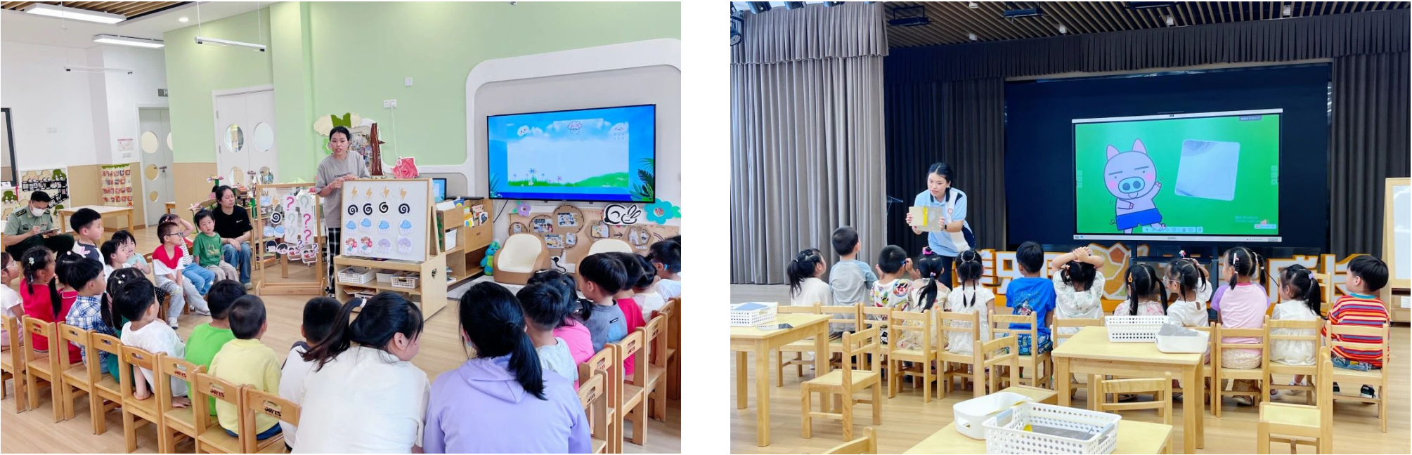实习教师殷昕悦和叶梓欣在半日活动中展示了生活与运动组织板块,全体新手教师和实习教师参与了观摩。