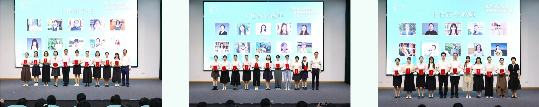 庆祝活动上,来自上海师大基础教育集团旗下的上海师大附属嘉定小学的优秀教师们荣获“十佳班主任”“十佳教学能手”和“十佳青年教师”等称号。