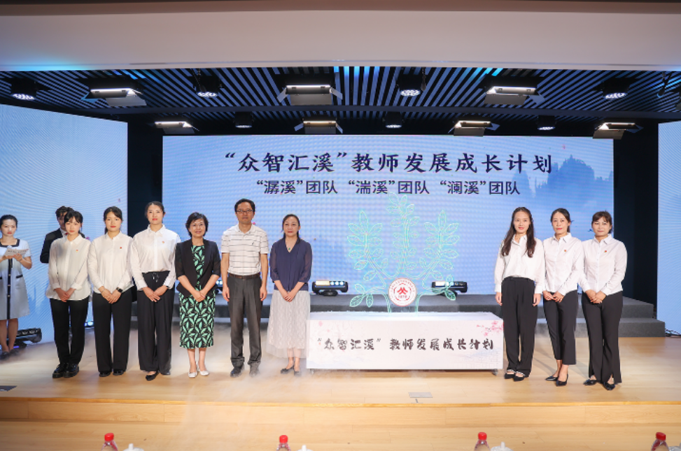 附属黄浦梅溪小学积极引导全体教师深刻认识在教育强国、科技强国、人才强国建设中肩负的光荣使命与重大责任,推出了“众智汇溪 ”教师发展成长计划、教师综合素养赋能计划和师德师风社区实践计划三项师资队伍建设计划。活动中, 副处长郭长江、黄浦区教育局副局长杨燕、黄浦区教育学院党总支书记、副院长魏薇共同以“浇灌”的方式启动了“众智汇溪”教师发展成长计划。