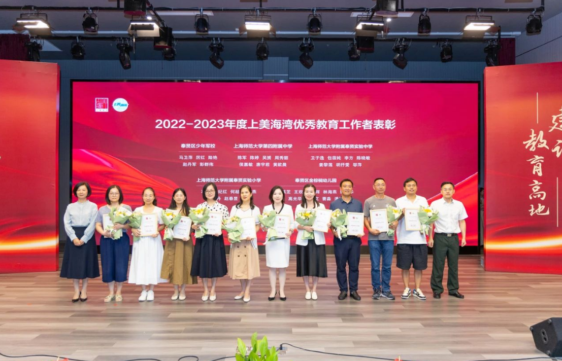 庆祝活动上,来自我校基础教育集团旗下的 第四附属中学、 附属奉贤实验中学、 附属奉贤实验小学的优秀教师们荣获上美海湾优秀教育工作者称号。
