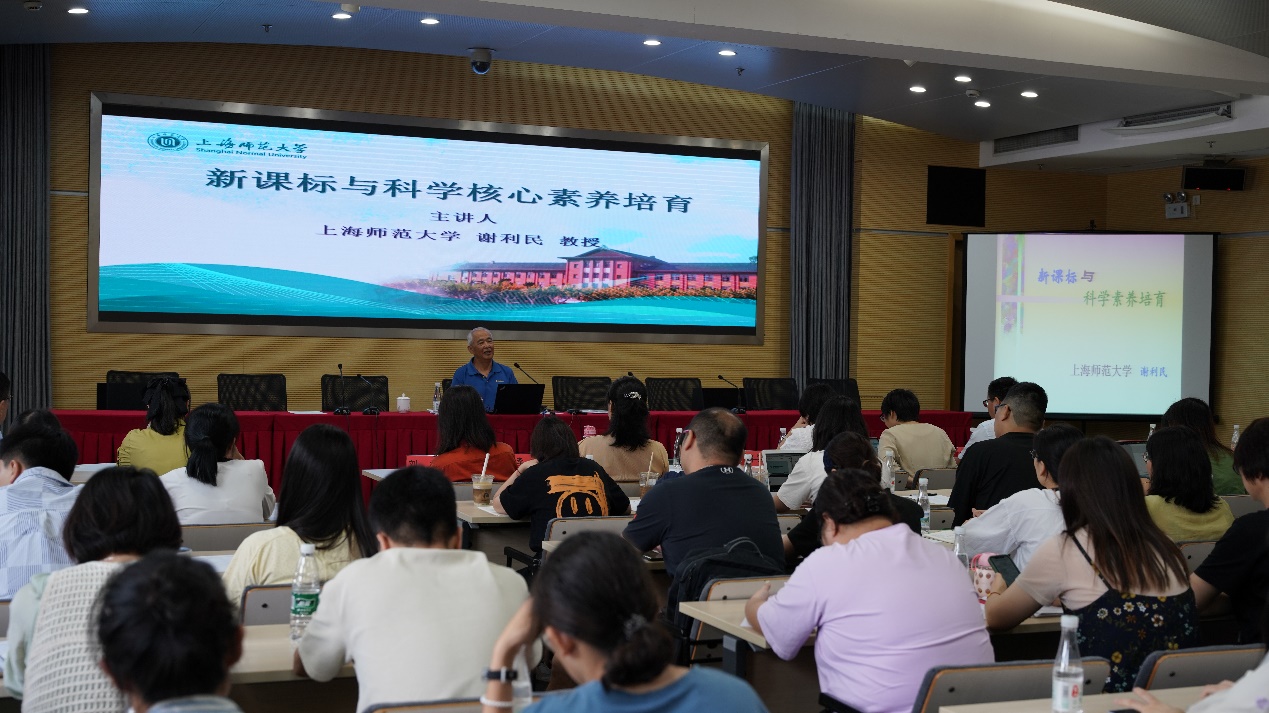 谢利民教授作《新课标与科学核心素养培育》专题报告。立足新时代、新课程、新教学,谢利民教授从学校内涵发展中的教学质量、贯彻核心素养的基本途径、通过教育评价落实核心素养等方面展开,并结合科学教育的新问题、新要求,引导教师重新审视自己的角色定位和课堂教学,思考如何将学生核心素养培育落到实处。