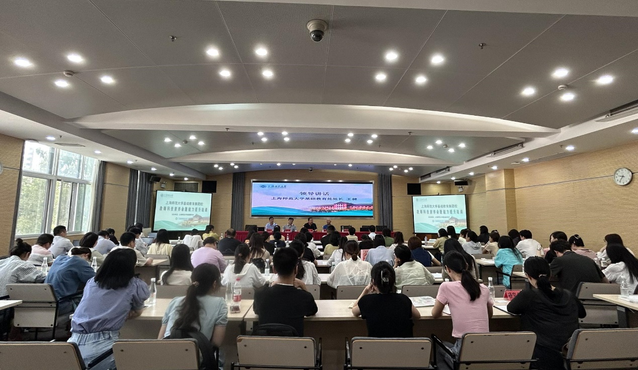 9月17日,上海师大基础教育集团校教师科技素养命题能力提升培训开班仪式在 徐汇校区会议中心第二报告厅举行。 处长王健教授,化学与材料科学学院院长杨仕平教授,谢利民教授、李利珍教授、孙可平副教授,数理学院方伟副教授、管艳副教授,信息与机电工程学院李美子高级实验师,环境与地理科学学院刘兰副教授,生命科学学院李慧副教授,化学与材料科学学院杨红教授、应叶副教授等专家,来自上海师大基础教育集团19所附属学校的63名教师以及来自上海师大相关院系的研究生团队参加了开班仪式。开班仪式由 基础教育发展研究院研训员王巍博士主持。