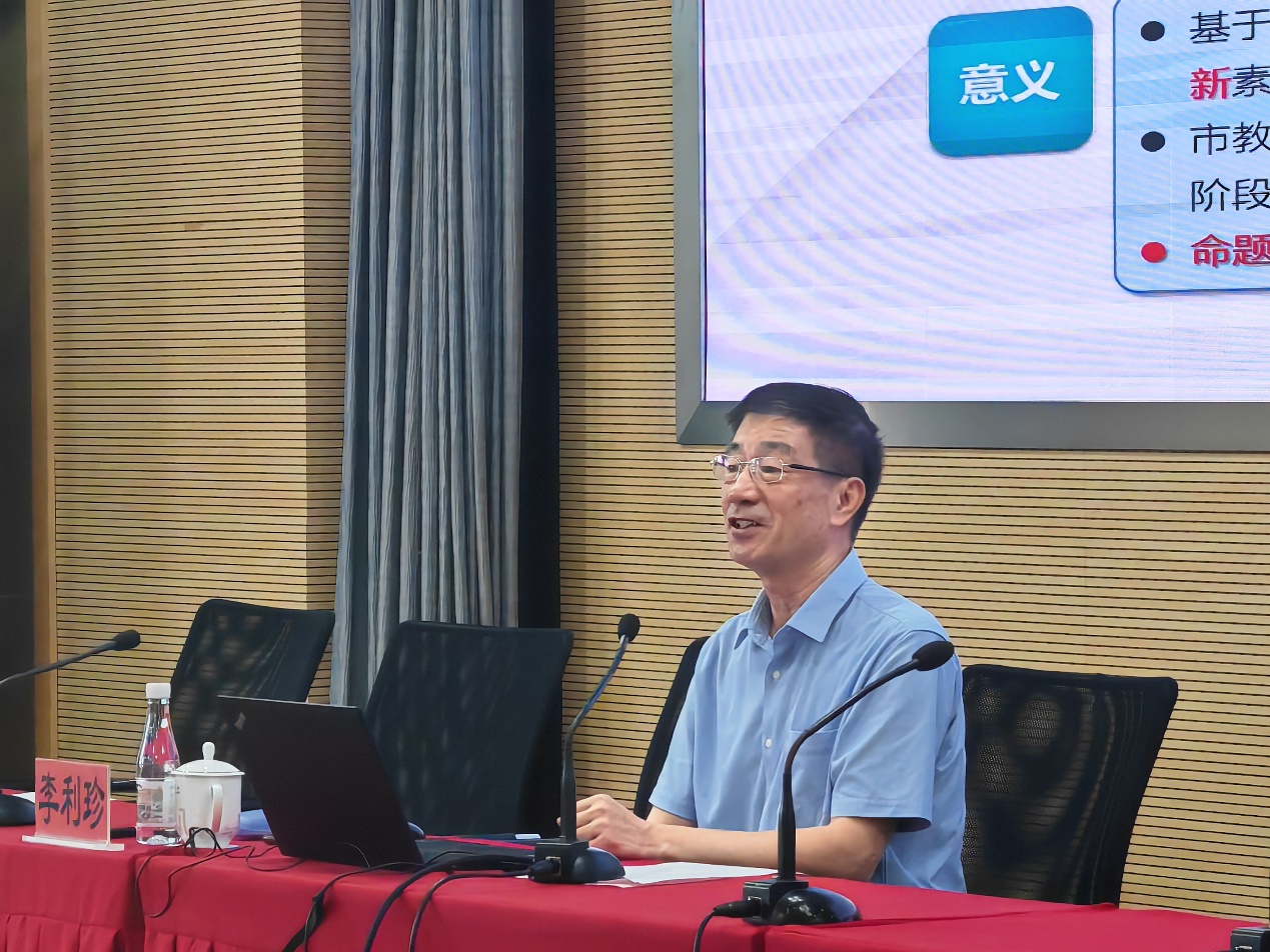 李利珍教授作《科技素养测试设计与样例分析》专题报告。李教授首先对科技素养测试题目的命题原则与要求进行了详细说明,并结合数学、物理、化学、生物学、地理等多学科综合试题案例,分析了素养立意的试题更具结构性、整体性、情境性等真实任务的特点,进一步启发了教师命题思路,为后续实训打下扎实基础。