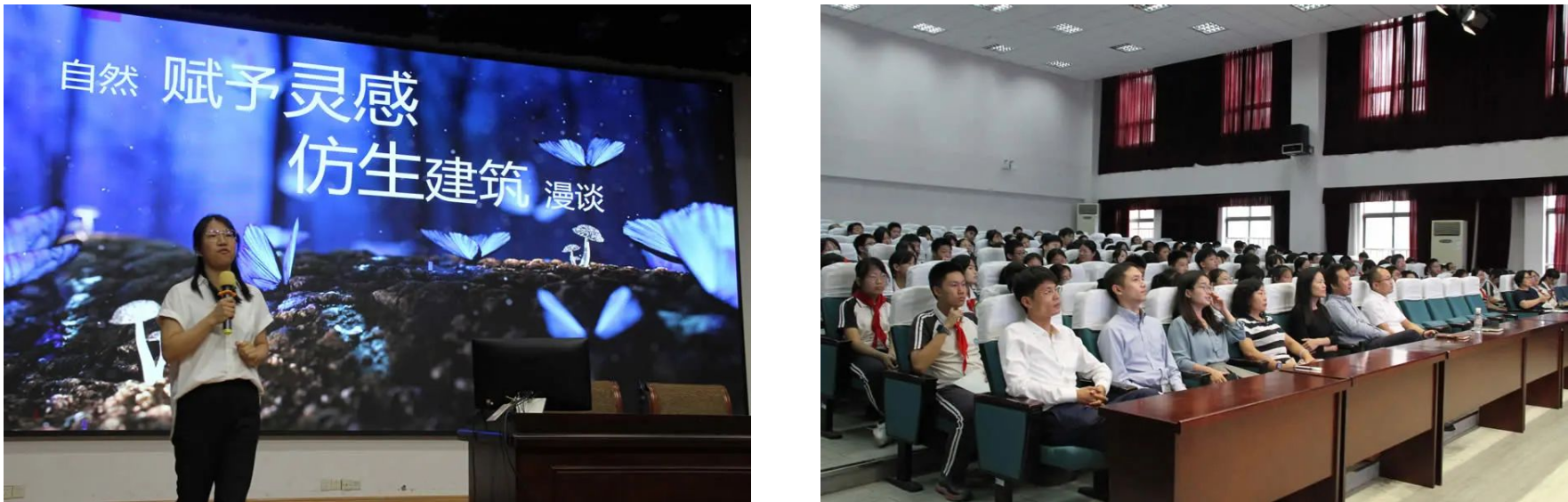 下午,在学校阶梯教室,建工学院杨凌志老师为部分师生作题为“仿生建筑漫谈”的讲座,妙趣横生,把学生引入科学研究的崭新领域,极大激发了学生科学探索的兴趣。