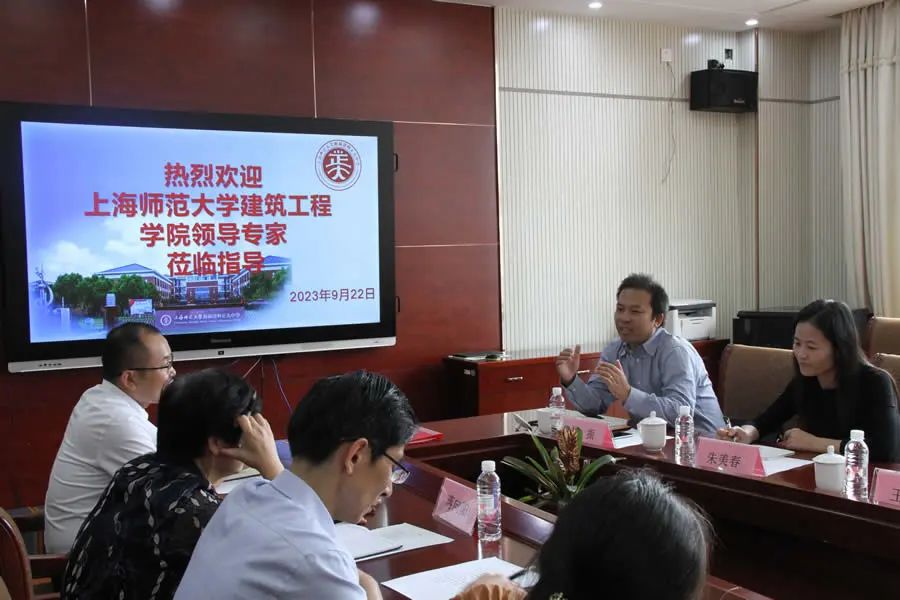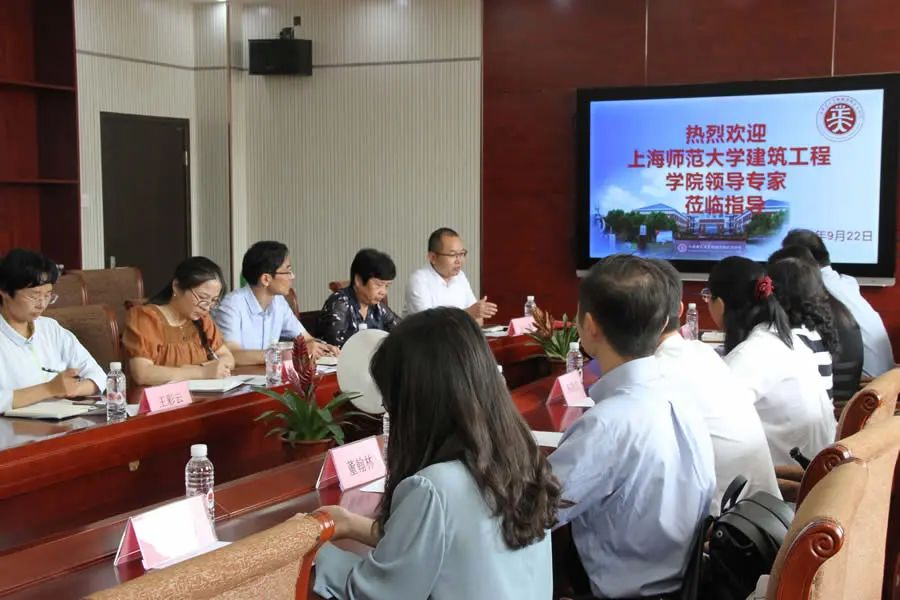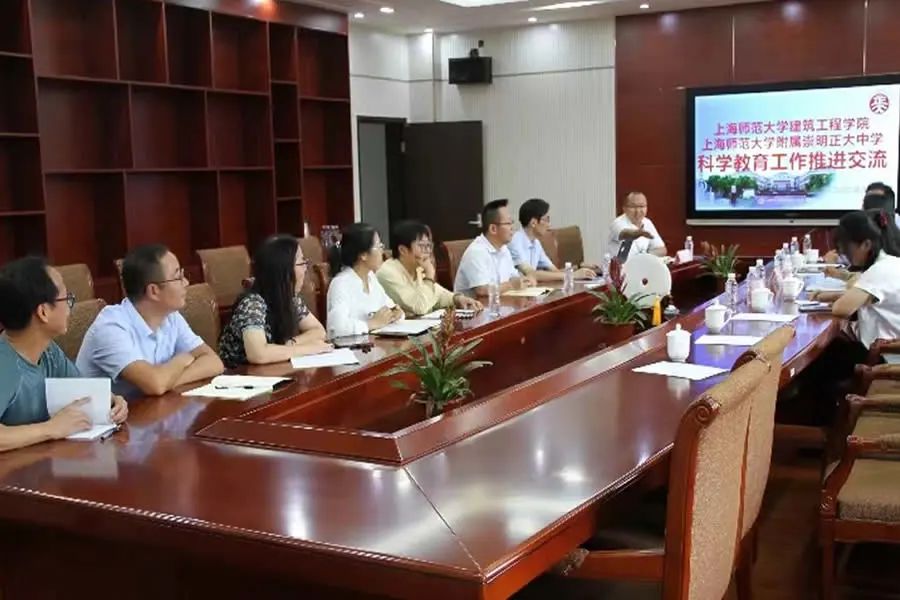 9月22日上午, 建筑工程学院院长胡振一行七人到 附属崇明正大中学开展合作交流活动。上师正大校长王通、书记蒋向阳及全体班子成员参加本次交流活动。