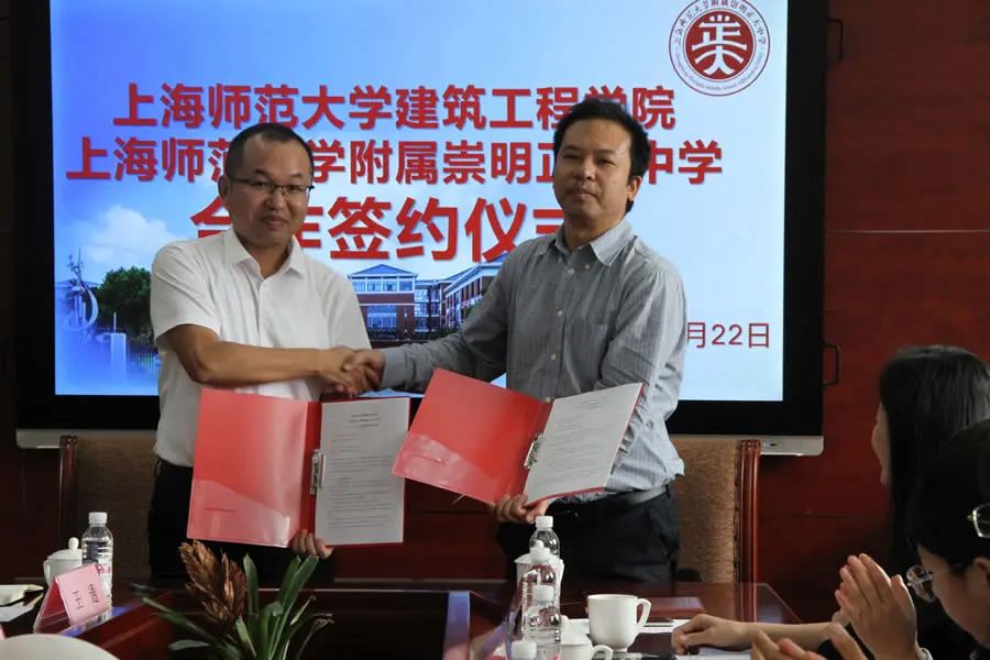 随后双方签署了《 建筑工程学院、 附属崇明正大中学合作教育协议书》
