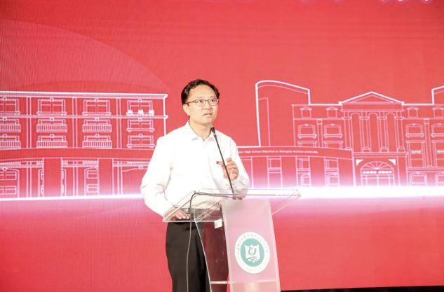 上师嘉高党支部书记、校长郭长江致辞。他首先回顾学校发展历史,进一步指出师道教育特色即把教师的品质和精神,融入学校教育教学工作的方方面面,成为学校特色发展的核心价值观和驱动力。同时提出未来学校发展建设构想,表达了争取早日创建成功上海市特色普通高中的坚定信心。
