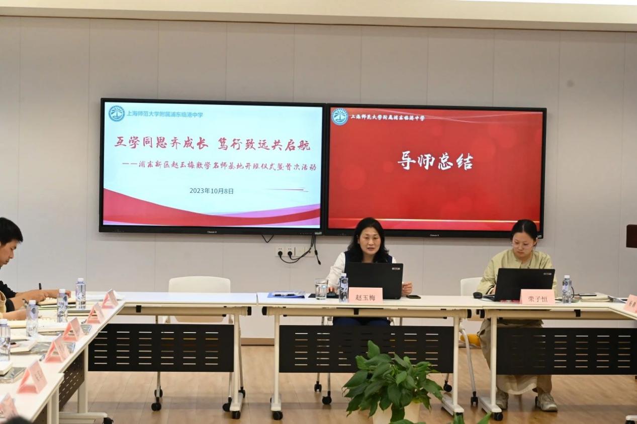 2023年10月8日,上海市浦东新区赵玉梅数学名师基地开班仪式暨首次活动在 附属浦东临港中学隆重举行。基地主持人、上海市特级教师、正高级教师、 附属浦东临港中学校长赵玉梅主持活动,来自浦东新区14所学校的20名基地学员与基地秘书共同参与本次活动。