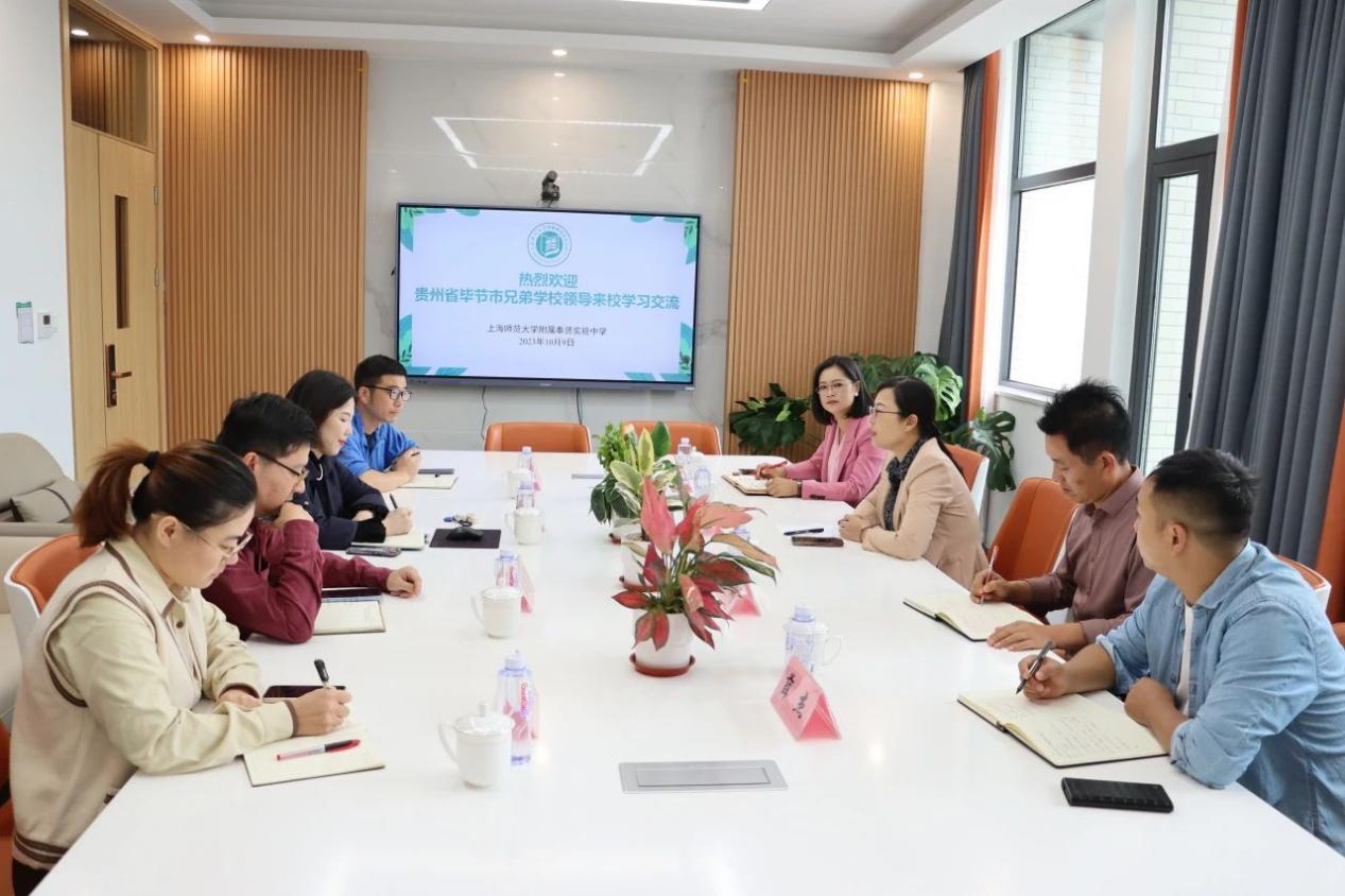 2023年10月9日,在 副处长李晓芳的带领下,贵州省毕节市七星关区校长代表薛杰、孙靖和罗蒙爱前往 附属奉贤实验小学和 附属奉贤实验中学进行交流学习。