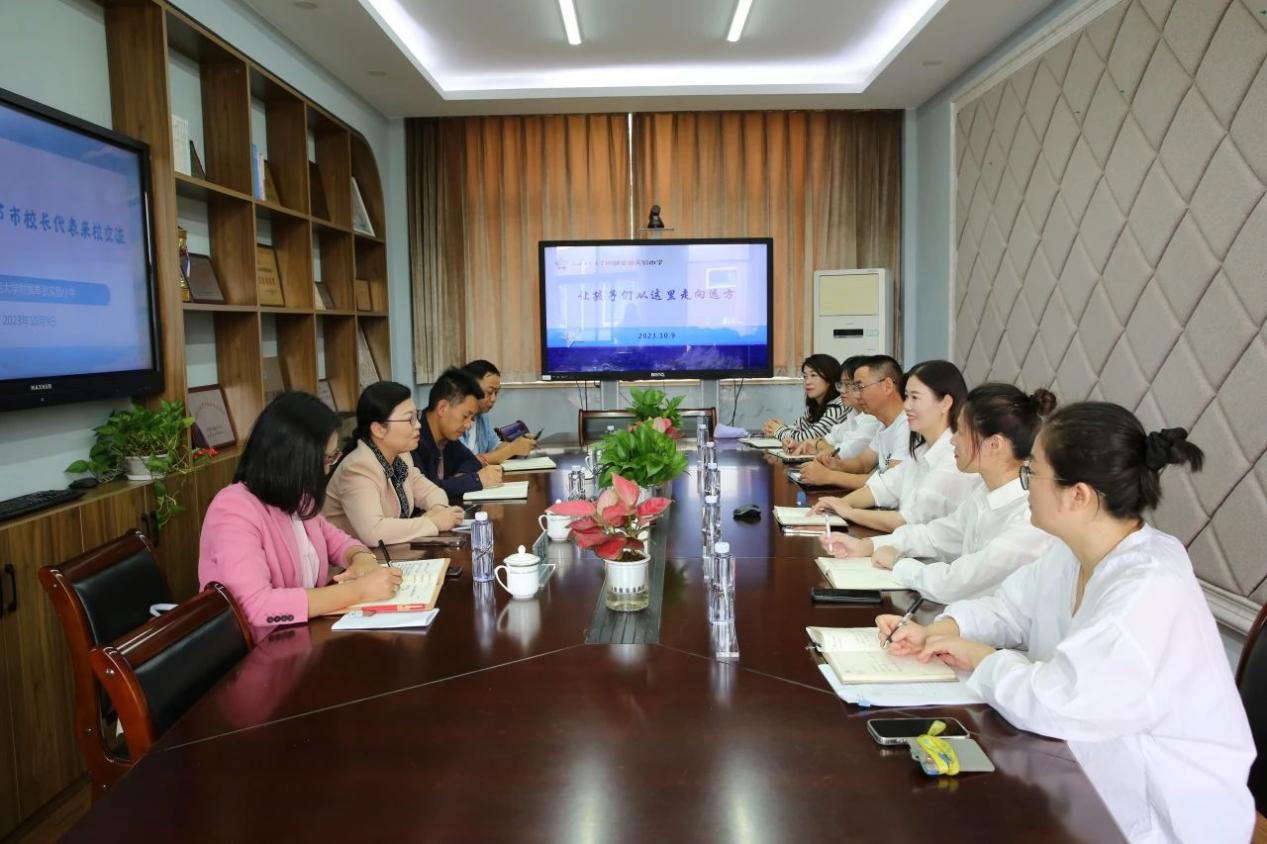 包蓓姹对三位校长的到来表示欢迎,并介绍了学校的办学理念、师资队伍、课程建设、共享共建等方面的基本情况。