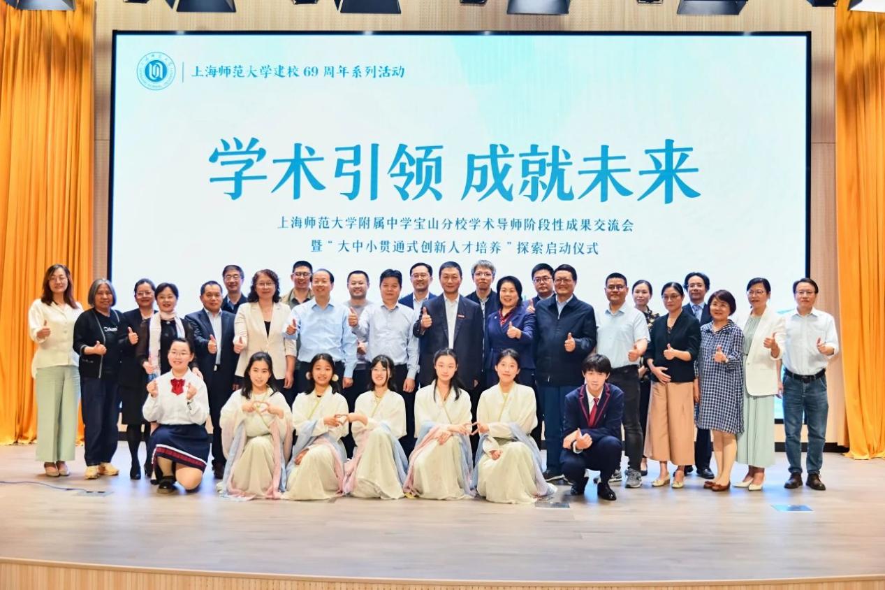 10月16日, 附属中学宝山分校学术导师阶段性成果交流会暨 “大中小贯通式创新人才培养”探索启动仪式在 举行。 党委书记林在勇、宝山区教育工作党委书记沈杰、宝山区教育工作党委副书记兼教育局局长张治, 马克思主义学院党委书记刘凤、基教处副处长兼上海师大附属嘉定高级中学校长郭长江、基教处副处长李晓芳,上师附中宝山分校校长贺亚丽、宝武人才开发院副院长张丽娟及上师附中部分校区代表、上师附中宝山分校首批85名学员出席了会议。此次活动也是 建校69周年系列活动之一。
