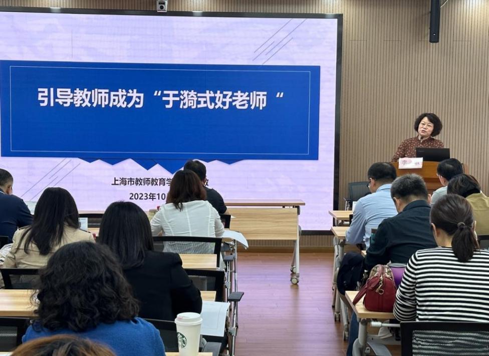 上海市教师教育学院李敏副研究员作《引导教师成为“于漪式”好老师》专题讲座。她从“学生喜欢的‘四有’好老师是什么样”的问题引入,结合身边的“四有”好老师——人民教育家于漪和几个必须参照的重要政策解读,深入浅出地分析、讲述成为“于漪式好老师”的重要性和可行举措,给学员带来不少启示和思考。
