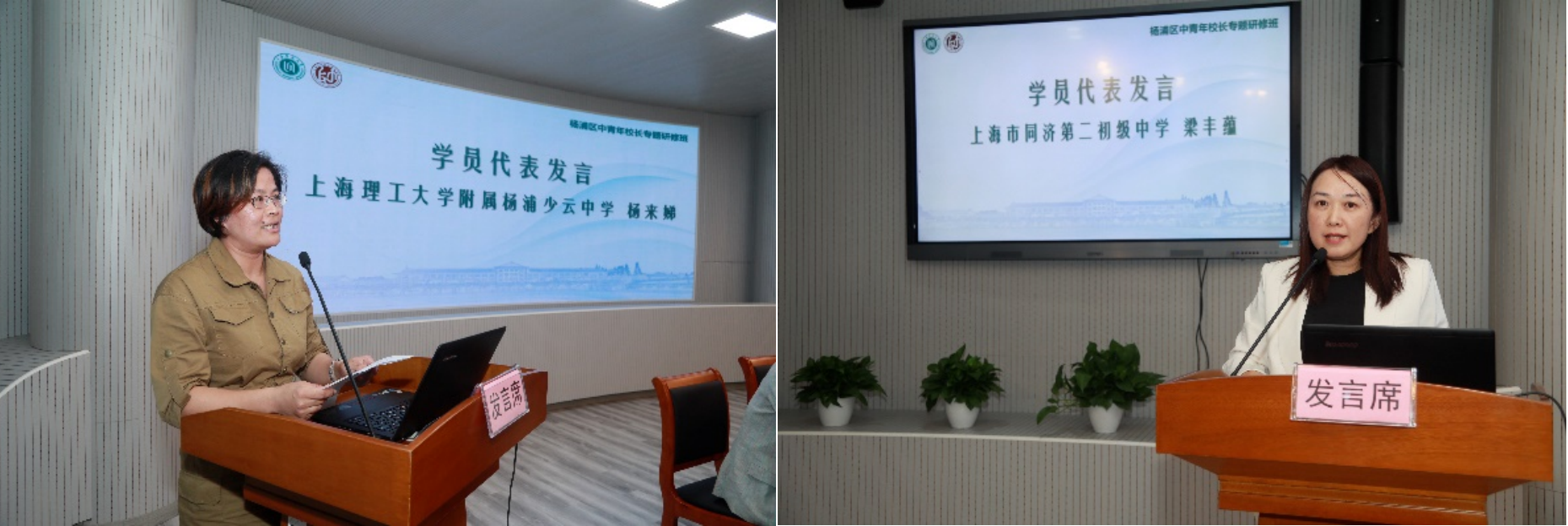 上海理工大学附属杨浦少云中学杨来娣和上海市同济第二初级中学梁丰蕴作为学员代表发言,表达了对此次培训的期待和决心,表示一定会珍惜本次培训机会,做到端正态度学、带着问题学、设定目标学,将理论与实践结合,传承创新,勇担使命,为杨浦教育贡献自己的智慧和力量。