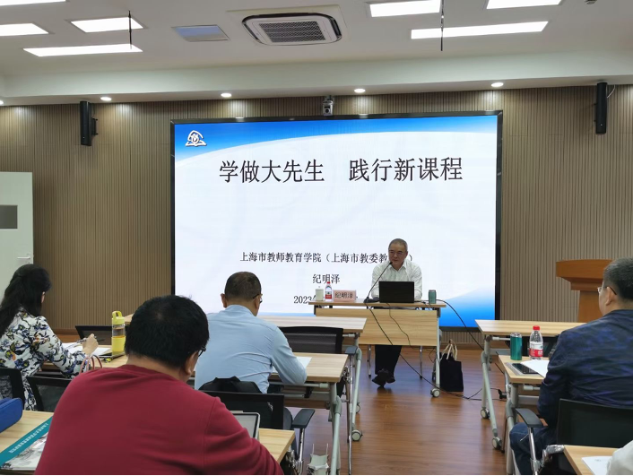 上海市教师教育学院副院长、特级教师、正高级教师纪明泽作首场专题讲座——《学做大先生,践行新课程》。他从“大命题、大课程、大课堂、大熔炉、大先生、大教研;新方案、新课标、新课程、新教材、新教研、新评价以及新形势、新任务、新使命、新担当、新责任、新作为”三个方面重点阐述了怎样落实立德树人根本任务,加快建设高质量教育体系。同时强调,在推进“双新”实施过程中,应树立“以人为本”、“立德树人”、“基于标准”三个观念;把握“纵向发展”、“横向比较”、“当前状况”三个视角;加强“整体研究”、“实证研究”、“团队研究”三个研究;养成“档案积累”、“团队研讨”、“个人反思”三个习惯,让人人都能感受到高质量创智教育的温度,办人民满意的教育。