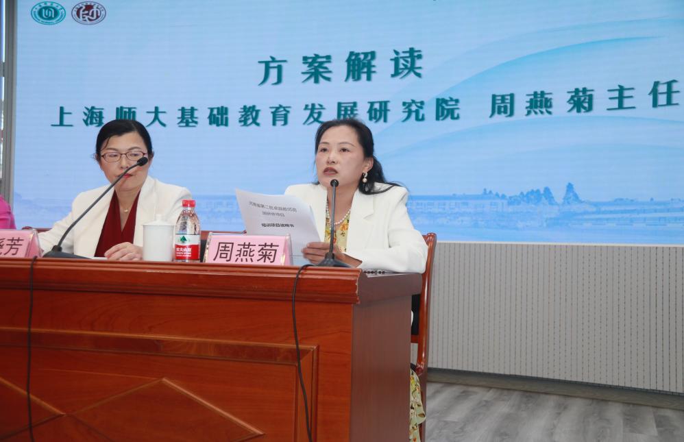 周燕菊主任首先介绍培训方案。本次培训按照问题导向、任务驱动、行为反思、行动跟进的原则,采取线上线下相结合的形式,通过专题讲座、案例分析、沙龙研讨、教育考察等研修方式组织实施,共设置了政治素养与师德修养、校长使命与教师发展、学校管理与教育实践、经验提炼与成果展示四大专题模块。