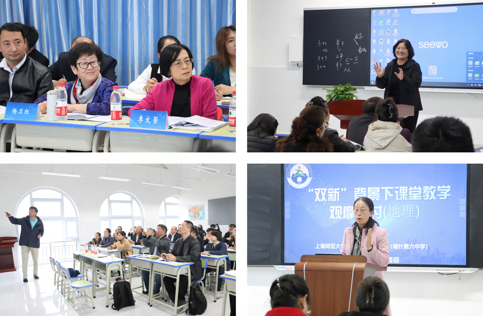 综合指导期间,针对附属喀什实验中学对语文、数学、英语、体育、生物、科学等的发展需求,上海师大 组建了特级校长李文萱、特级校长杨泰山、数学正高级特级教师王国江、语文正高级特级教师鲍志慧(嘉善县上师实验学校总校长)、数学正高级特级教师赵玉梅(附属临港中学校长)、生物资深教研员许琼老师、科学资深教研员印兰、体育学院原院长蔡皓教授、体育学院高幕峰教授、人文学院王正瀚副教授、信息与机电工程学院季隽副教授等专家团,对语文、数学、英语、体育等学科进行推门听课、评课、研课十余节,并指导教研组开展教研活动。 专家郭长江副教授与附属喀什实验中学校领导和中层干部团队以及上海赴喀什援疆教师团队进行了多场座谈会,就学校师资配备、教师进修与培训、帮困助学、党建引领、基础教育资源优化部署等重要问题进行了深度的交流研讨。