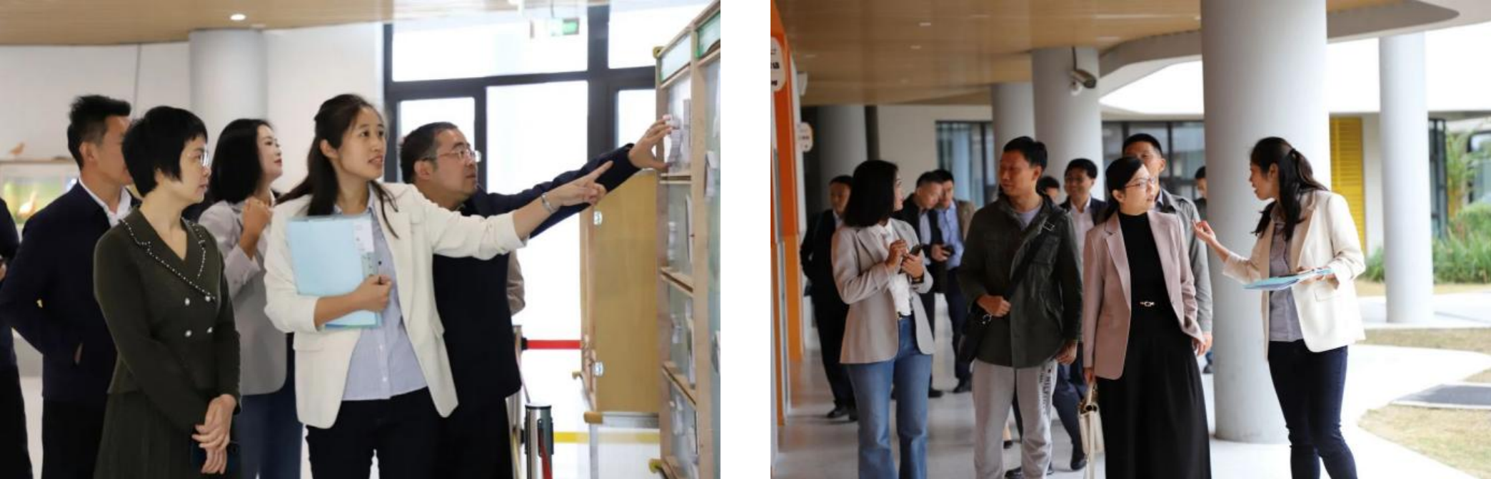冷彩花副局长、王健处长等一行先后参观了教学楼、食堂、体育馆、报告厅、图书馆等场馆设施,相互交流设计理念、功能布局、使用心得等,对学校的硬件环境和规划布局赞不绝口。