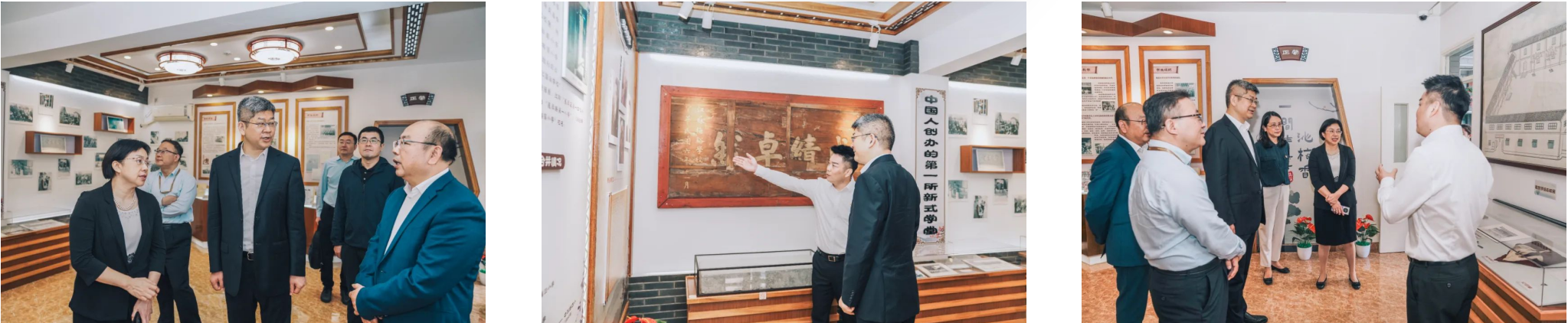在附属黄浦梅溪小学校长张叶清的陪同下,教育部教师工作司一行走进校史室,听取学校校史的介绍,追循历史的脉络,沉浸在丰厚的校史文化和深邃的历史长河中,听着梅溪小学创造的诸多“第一”看着“梅溪三宝”所传承的学校教育精神和曾经教学情景……感受到了145年的恢宏校史,进一步了解了梅溪作为第一所中国人创办的新式学堂的丰厚积淀。