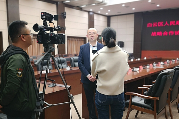 仪式结束后,贵阳广播电视台分别采访了贵阳市白云区教育局范轩祥副局长和我校张峥嵘副校长。范轩祥希望合作共建学校在建设阶段能引进上海师大的优质理念,以及上海师大对校方团队的培养,通过前期配合,能够把学校的硬件、软件都做到一流,让学校有一个高起点。张峥嵘表示在签约仪式结束后,上师大将继续努力把 优质的学科、师资投入到白云区这所学校,真正办一所人民身边的好学校,让 的海派教育文化能够在白云区、贵阳市开花结果。随后,与会领导一行还实地察看了新校区建设情况。