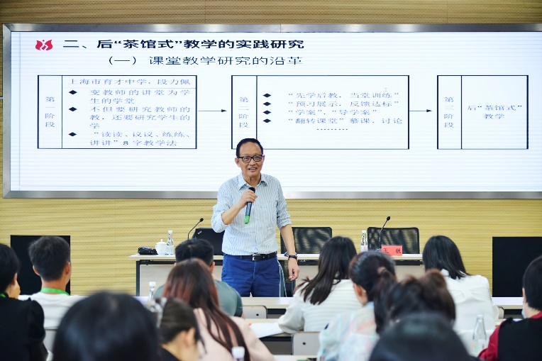 本次集中培训围绕课堂教学、学生德育、法制教育共安排了五场专题讲座。全国最美教师、上海市特级校长、上海市静安区教育学院附属学校校长张人利作首场专题讲座《课堂教学研究的教学方式视角》。他从课堂教学研究的认识、后“茶馆式”教学的实践研究、深度整合式教学的实践研究三个方面,用理论与案例相结合的方式进行深度阐释,并解答了教师在日常教学中的困惑。