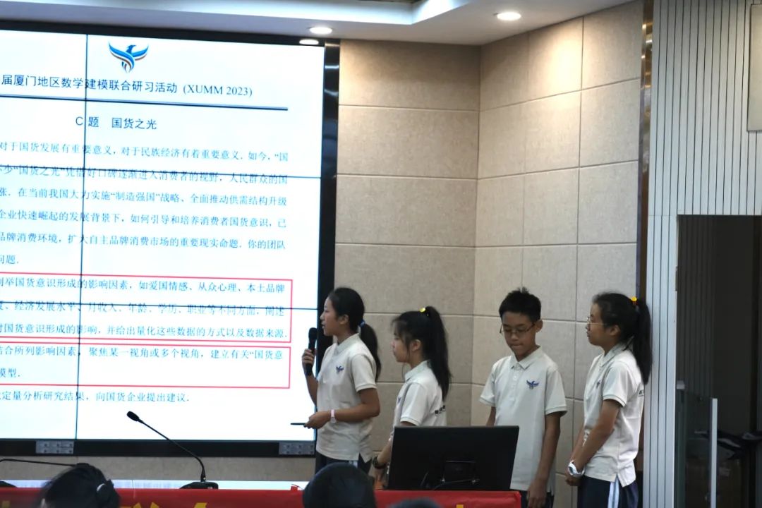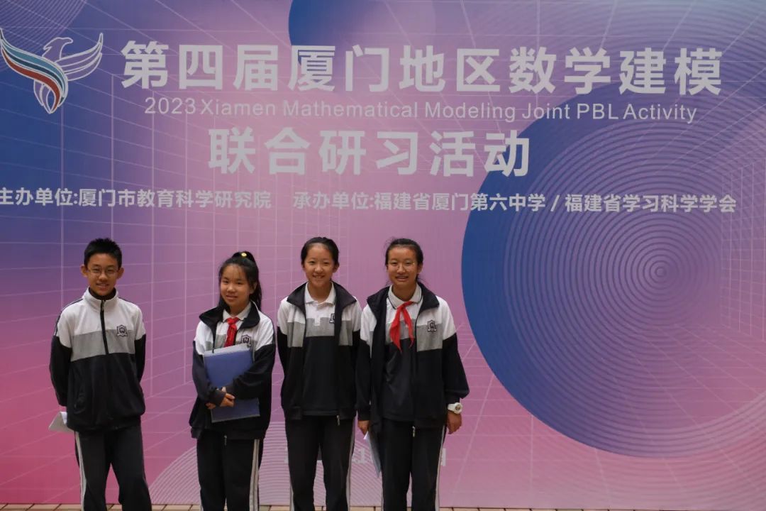 20231028日,由厦门市教育科学研究院主办,厦门六中与福建省学习科学学会共同承办的第四届厦门地区数学建模联合研习活动答辩决赛在厦门六中举行。本次活动吸引来自上海、广东、湖北和福建省九地市的573支队伍共2034名学生报名参赛,规模空前。 附属第五实验学校七年级四名学生组成的数学建模队伍成功闯入决赛并取得了特等入围奖暨一等奖的好成绩,四名学生分别是:潘武逸、吴品洁、周馨雨、毛芯妍。