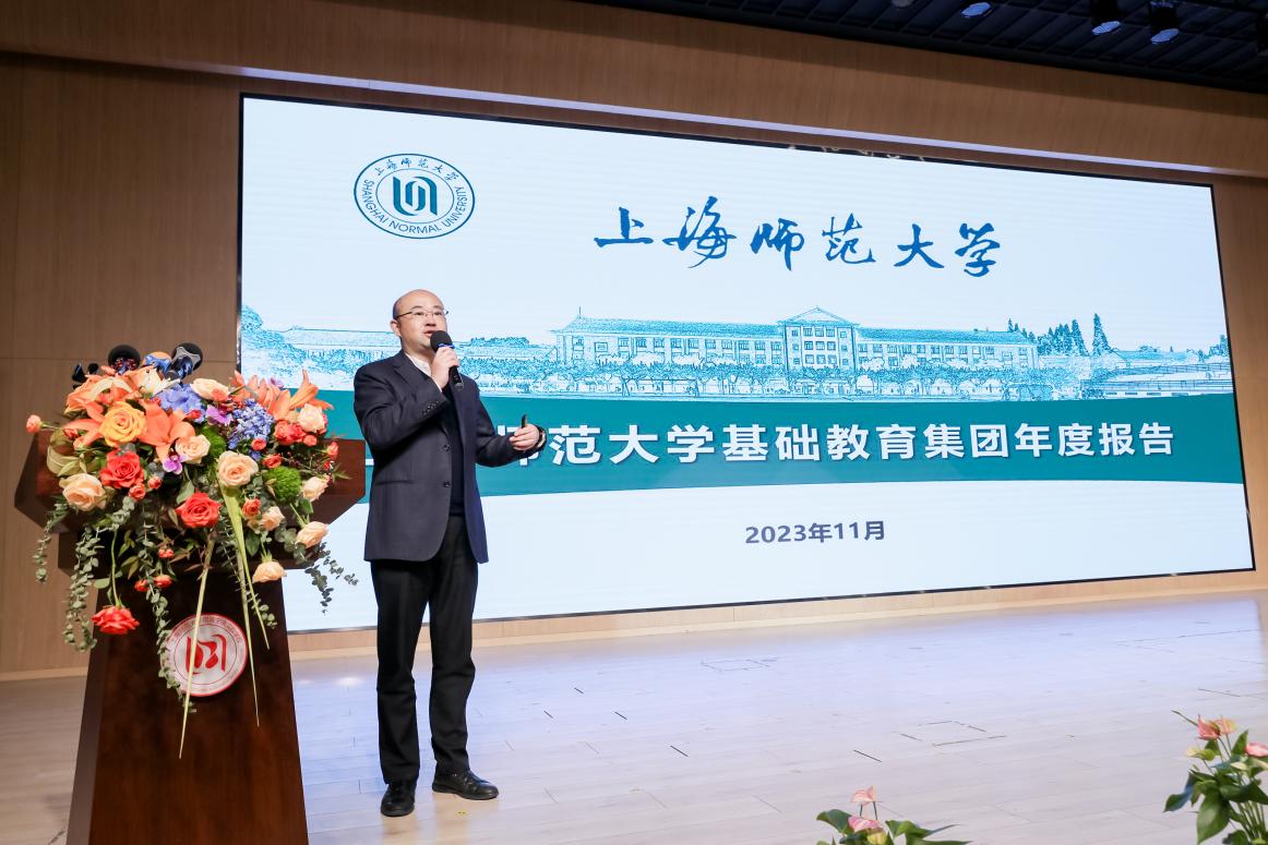 颁奖典礼后,张峥嵘在年会上作2023年集团年度工作报告,总结了今年集团的发展态势、重点项目实施情况、取得的成绩,对2024年度集团工作进行了展望部署。据不完全统计,一年来基础教育集团校办学改革经验与典型事迹被《人民日报》、《解放日报》、《文汇报》等主流媒体报道140余次,进一步凸显了我校作为教师教育特色鲜明的高水平师范大学引领和服务基础教育的积极作为。集团师生获得包括“上海市四有好老师”、上海市特级教师、上海市中小学中青年教师教学比赛一等奖、全国中学生数学建模一等奖等多项国家级省部级荣誉,彰显了师大附属学校优质集群的深厚办学内涵。