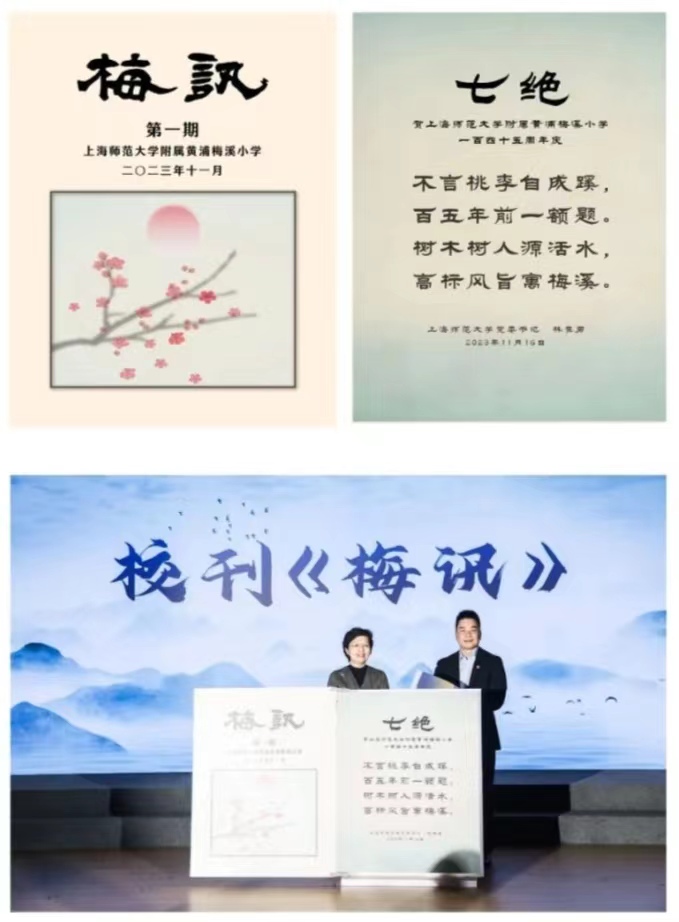 活动中,附属黄浦梅溪小学杰出校友陈铎通过视频向母校145岁生日送上了祝福。杨燕和附属黄浦梅溪小学校长张叶清共同发布了校刊《梅讯》并送上了祝福。这也是《梅讯》自1936年后中断以来的首次复刊。上海师大党委书记林在勇专门为《梅讯》复刊亲自创作了一首七绝,以祝贺附属黄浦梅溪小学建校145周年。