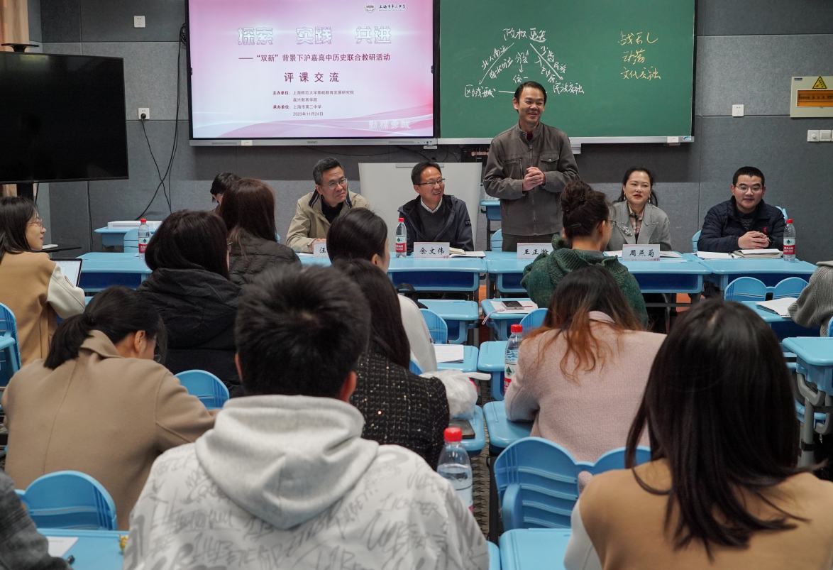 冬日凝霜不觉寒,同心共研暖归处。2023年11月24日,由 基础教育发展研究院牵头,嘉兴市余文伟“特级教师工作室”与上海市第二中学历史教研组共同举办了主题为“探索·实践·共进”的沪嘉高中历史联合教研活动。 副处长郭长江、 基础教育发展研究院办公室主任周燕菊、研训员王巍博士、 人文学院历史系王正瀚副教授参加了本次活动。