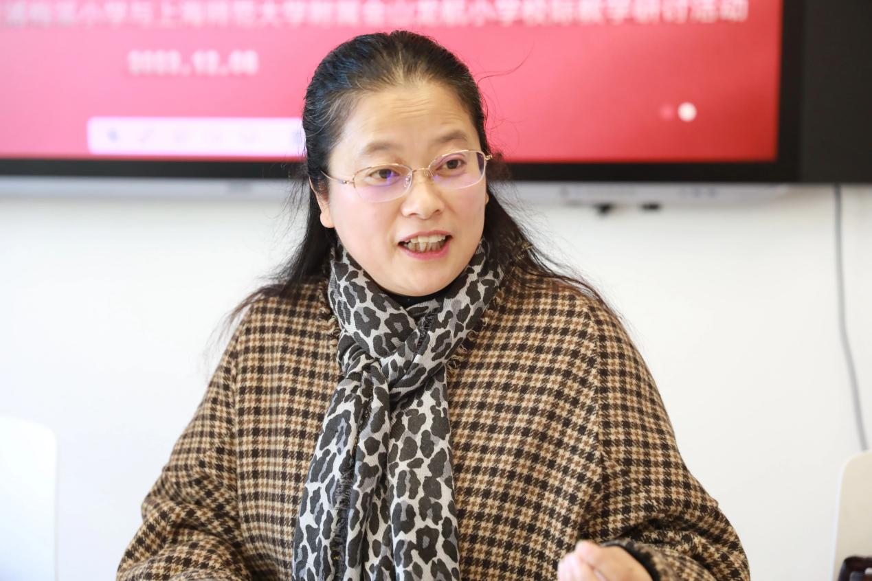 上海师大钟文芳副教授也对本次同课异构给予了较高的评价。她表示,两位教师都能依据新的课程标准的要求,做到以生为本来设计教学活动,注重知识的前后联系和知识的结构化。同时也对学校今后的教研提出了要求,希望更加关注学生的深度学习和高阶思维的培养,能在日常的教学中给予学生表达的机会,在练习设计中不仅要有基础性的练习,也要设计有开放性创造性地应用知识的练习,培养学生的开放性思维,批判性思维等。