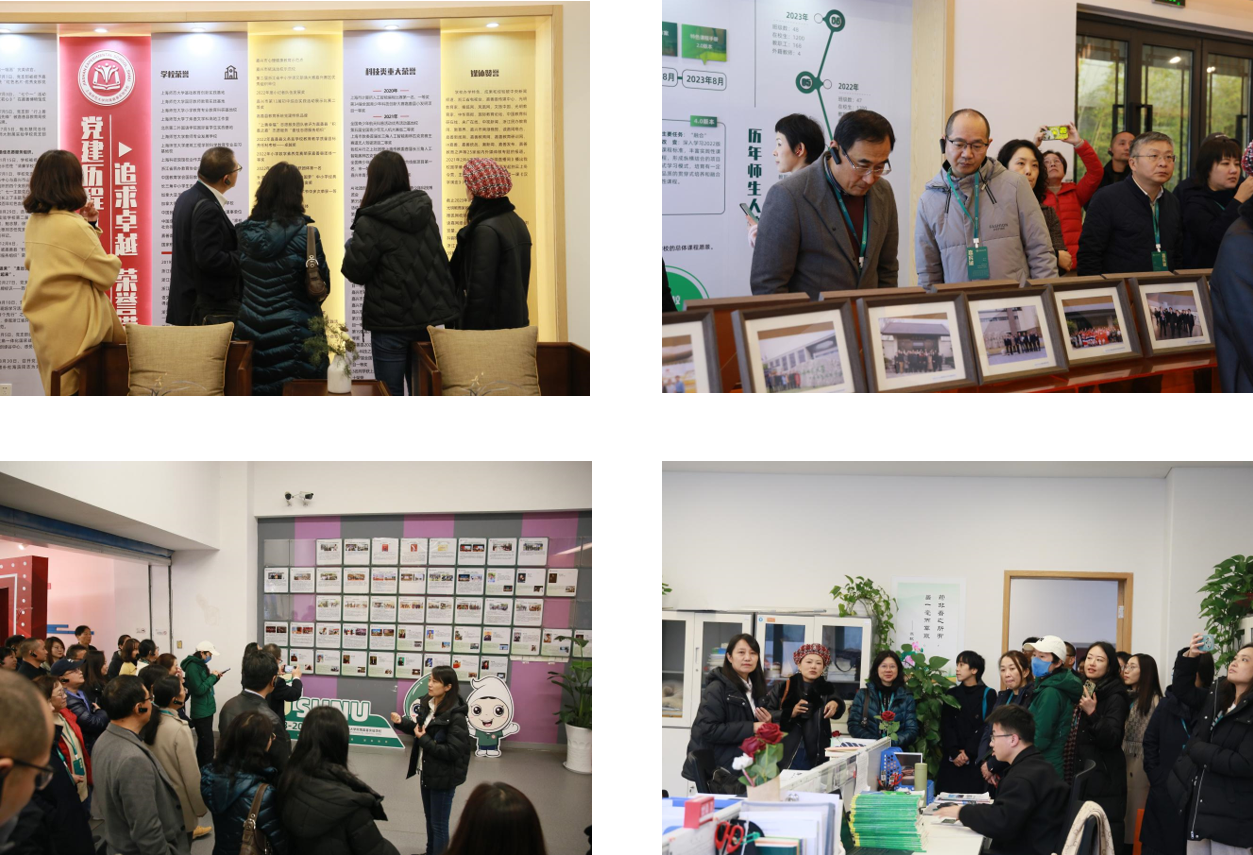在鲍志慧等校领导的陪同下,学员们首先走访参观了校园各处,随后在校史馆深入了解了上师大嘉善附校的发展历程与办学特色。学校优美生态的校园环境、宽阔开放的办学空间、先进完善的各种功能教室及区域……给学员们留下了深刻的印象。
