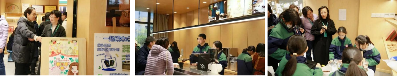 参观过程中,学员们走进课堂,与老师同学们互动交流,深入了解了学校艺术、科技、社会实践等课程实况与教学成果。其中,“职场体验与领导力”社团课中学生们将咖啡馆运营与公益环保结合的创新理念吸引了学员们的目光,在品尝学生亲手制作的咖啡、体验用咖啡渣和无患果制作用于爱心义卖的手工皂等实践项目后,纷纷为上师大嘉善附校生动开放的教育氛围、课程的无限创新力和师生的满满活力点赞。