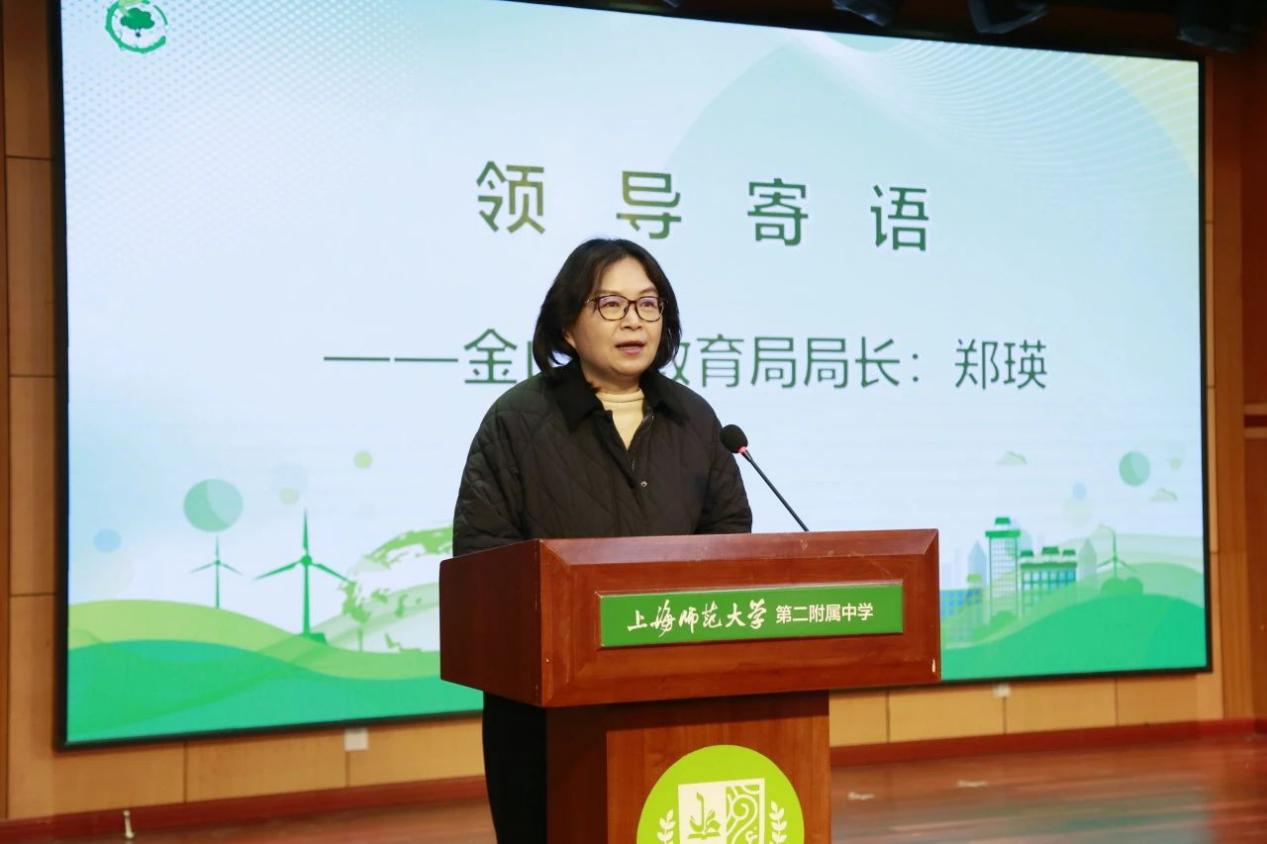 金山区教育局局长郑瑛对在本次论坛活动中获奖的同学表示祝贺,并对论坛活动过程中学生们展现出的潜力与创意、参与过程中的团队意识、自我成长能力等示以赞赏。郑瑛从“新、广、多”三个角度凝练了本次低碳论坛的特点,并对学生们、各学校今后在生态科技方向的发展提出了期望。