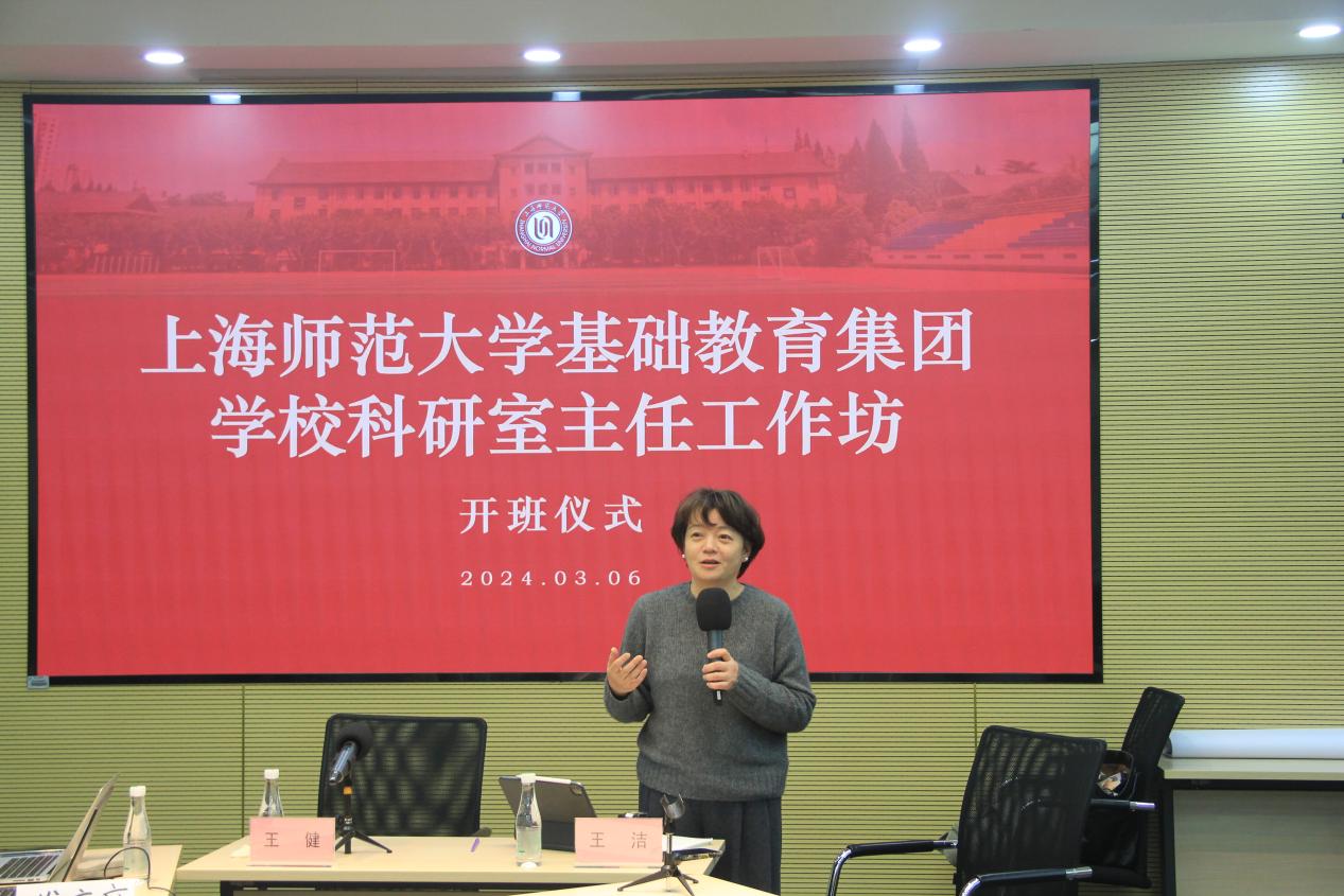 为进一步提升集团各校的教科研水平,加强科研室主任队伍建设,经过前期充分的论证和筹备, 基础教育集团学校科研室主任研修工作坊于3月6日举行开班仪式。我校教务处处长、 处长王健教授,本次工作坊负责人、校国际与比较教育研究院副院长、联合国教科文组织教师教育中心副主任王洁教授,以及来自我校基础教育集团学校的二十余名首期学员参加开班仪式。