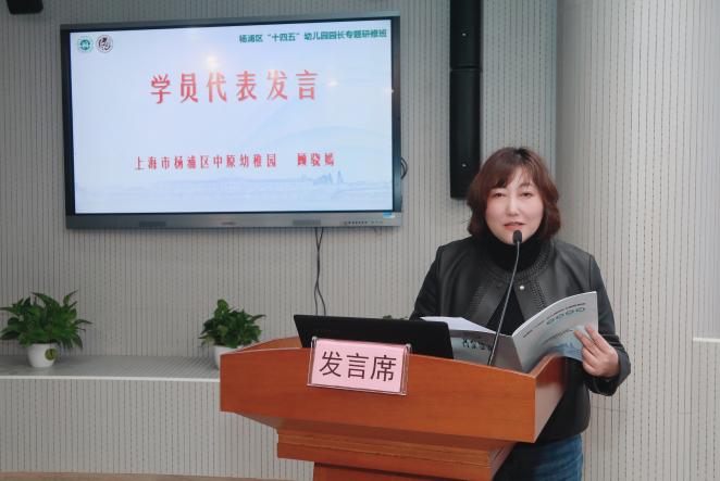 杨浦区中原幼稚园园长顾骁嫣、第二艺术幼儿园园长史佳妮代表全体学员发言。两位园长表示将以饱满的热情和积极的态度,全身心地投入到学习中,把所学的知识运用到教育管理实践,不断探索优质办园的新思路新方法,办好老百姓家门口的好学校。
