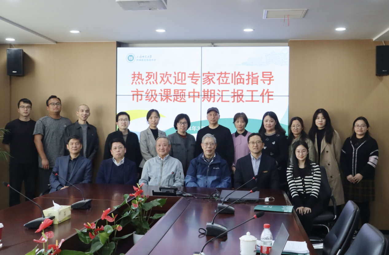 2024年3月29日,《课程建设视域下教师教育特色普通高中创建的行动研究》项目举办中期汇报。上海市教育委员会 调研员金松、 教育学院院长黄海涛、 原处长钱源伟、上海市大同中学原校长杨明华、嘉定区教育学院院长许晓芳、 基础教育发展研究院陆超出席会议并作评议指导, 附属嘉定高级中学课题组全体成员及行政参与学习。