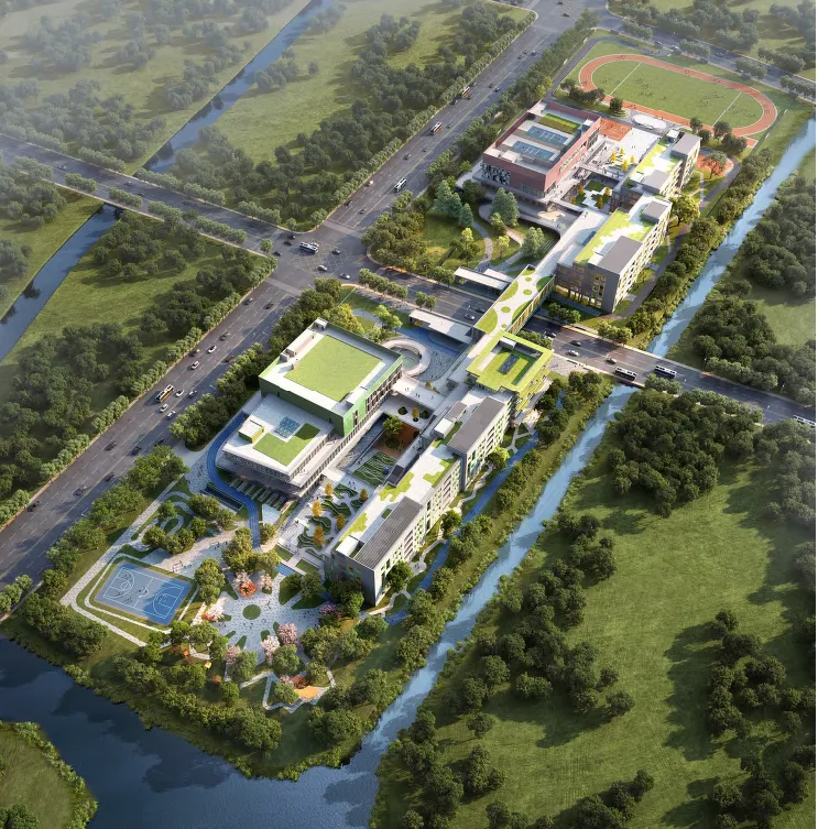 体育健康中心可以满足多样化的锻炼需求,还有一个超大的游泳池;戏剧艺术中心配备了多功能剧场、视听教室和艺术教室;原木乐园、沙地乐园、林间树屋、地质花园等,充满童真童趣;现代学习中心集图书阅览、独立学习、合作研讨、智能学习于一体,给学生自由探索的空间……
