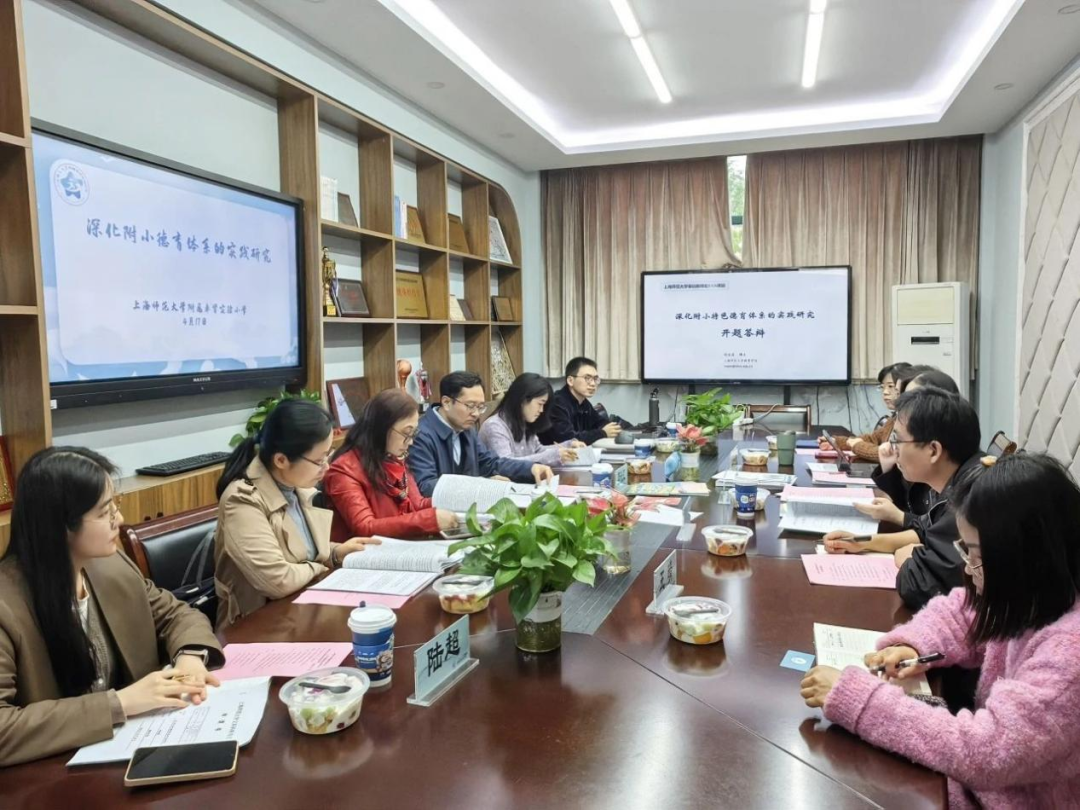 2024年3月21日上午, 康城实验学校召开UGS课题《以沉浸式心理体验剧为载体,推进特需学生家庭教育指导的实践研究》开题会,课题主持人是 心理学院乌阿茹娜副教授。会议特邀 心理学院副院长罗俊龙教授、闵行区教育学院德研员陈滢博士和科研员彭尔佳博士共同对课题进行论证。 康城实验学校党总支书记张美琴,党总支副书记、校长时俊,副校长顾凤娴,以及学校德育团队共同参加开题会。会议由科研主任程立海老师主持。