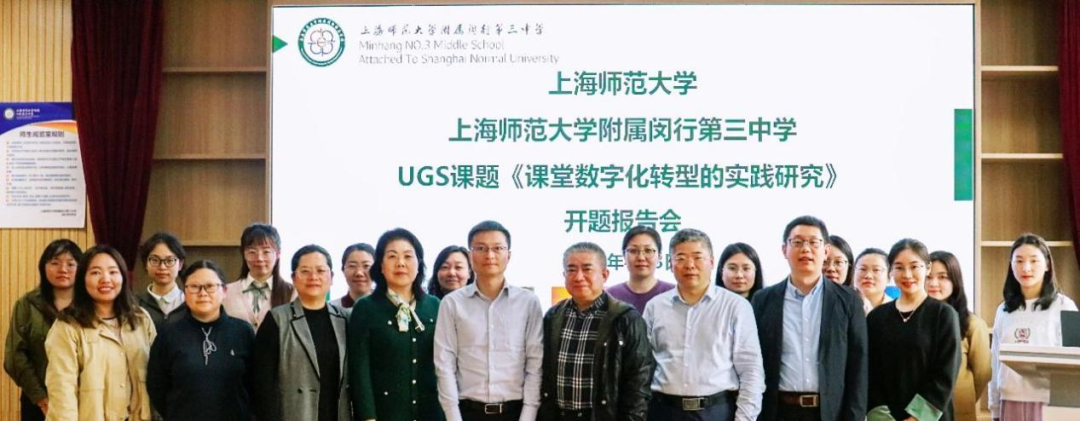2024年4月3日下午, 附属闵行第三中学召开UGS课题《课堂数字化转型的实践研究》开题论证会,课题主持人为 教育技术系鲍贤清副教授。此次开题论证会邀请了闵行区教育学院科研中心主任朱林辉、教师发展中心主任刘太如、上海市教科院普教所研究员周明、 附属中学宝山分校校长贺亚丽、 教育技术系鲍贤清副教授以及 基础教育发展研究院集团科研员陆超博士等。本次开题会由附属闵行第三中学科研负责人宋航老师主持,鲍贤清的研究团队和附属闵行第三中学课题组主要成员共同参与研讨。