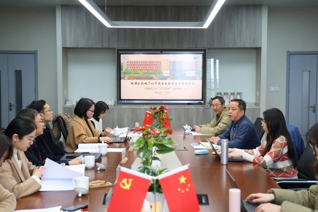 2024年3月12日下午, 附属青浦实验中学召开UGS课题《新课标视域下初中英语新教材使用策略研究》开题论证会,课题主持人为 附属青浦实验中学校长、 外国语学院胡俊杰副教授。此次论证会邀请青浦教师进修学院陆京炜主任和李霞主任、 外语学院副教授顾翡为论证专家, 基教处副处长郭长江、基础教育发展研究院副院长张惠康、基础教育发展研究院集团科研员陆超博士莅临指导课题开题论证会。论证会由附属青浦实验中学支部书记陈伟峰主持。