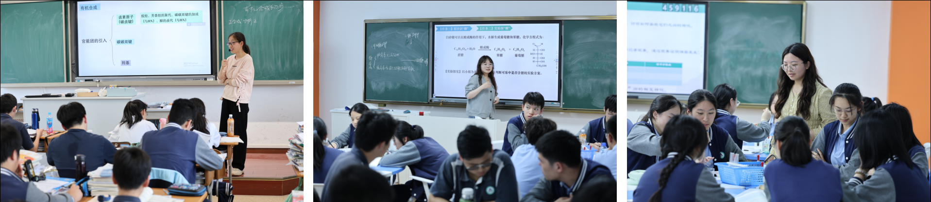 浦东新区教研员,正高级、特级教师周玉枝对化学组教师的课堂进行评课。周老师认为化学组的老师在授课过程中创设真实情景激发学生的学习兴趣,并且实验探究逐层递进,能够培养学生实验设计能力。老师们做到了跨学科实践,重视实验设计能力,互动培养读图能力,语言自然清晰,活跃课堂氛围,基本功扎实,错题讲评有方法。