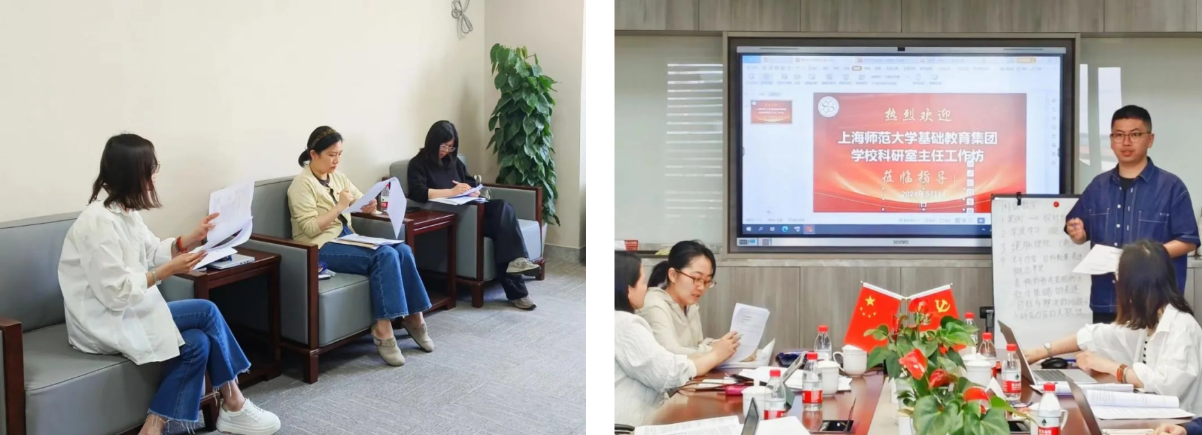 接下来,各位学员通过抽签形成了三个小组,每个小组针对附属青浦实验中学的两个课题展开了热烈讨论。在讨论过程中,学员们结合个人科研经验,深入探讨了两个课题的亮点和不足之处,同时推选小组代表进行组间交流。
