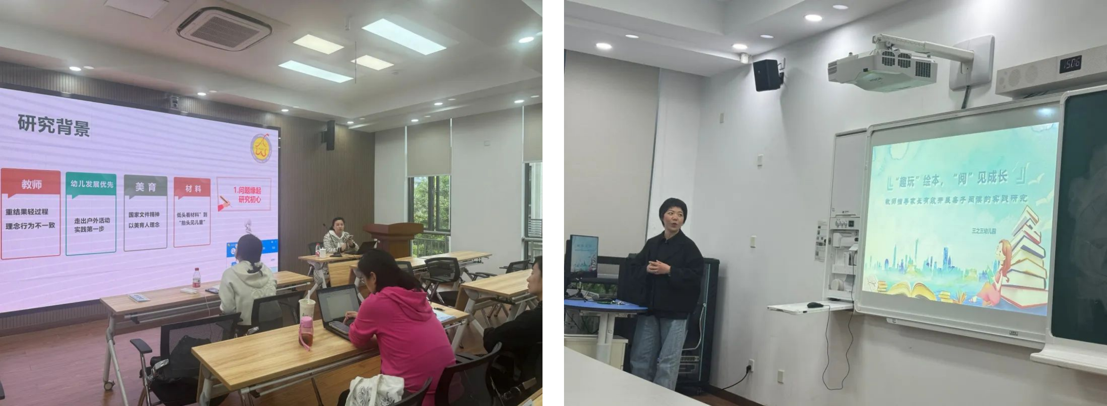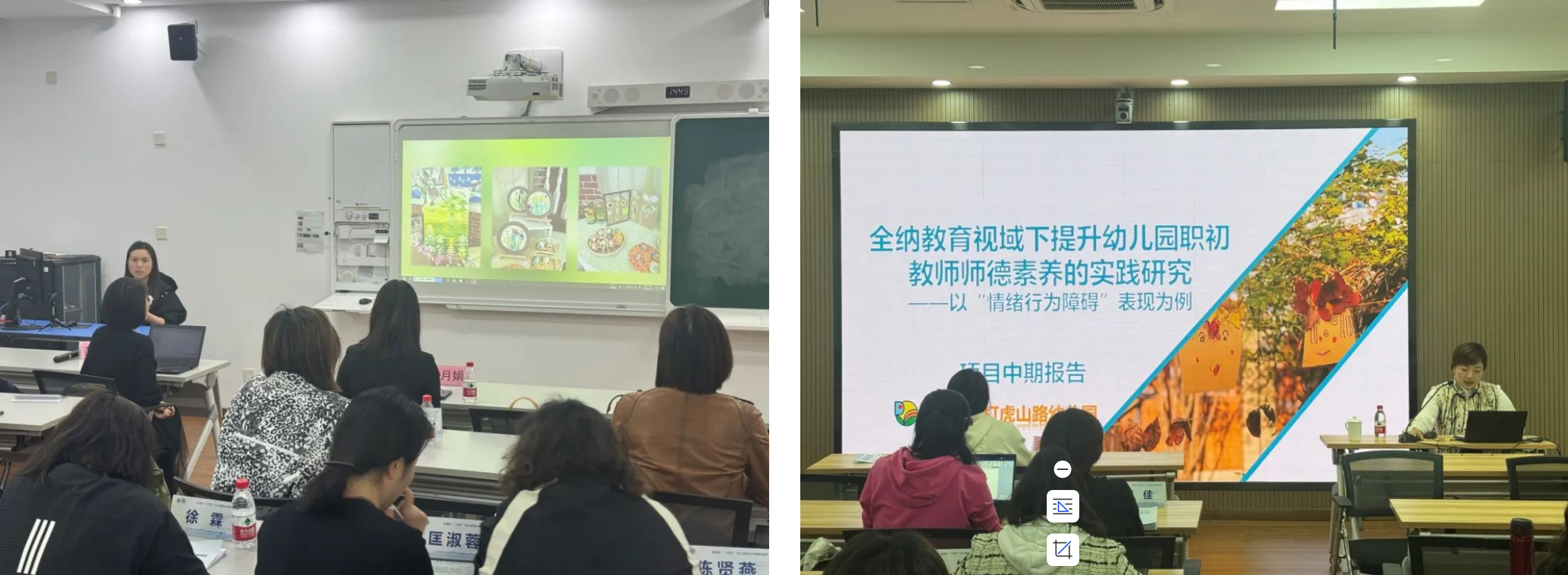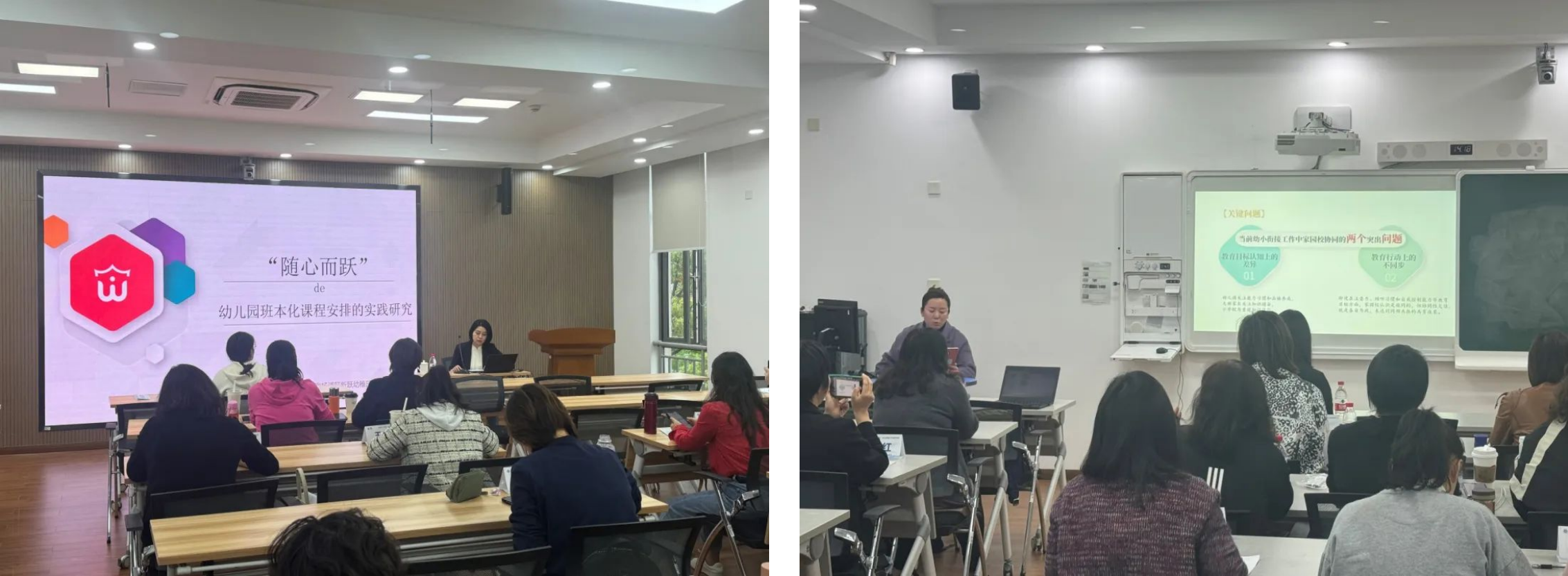 新跃幼稚园副书记吴湫蓉、打虎山路幼儿园副园长高萍、民星幼稚园书记、园长朱宁、五角场幼稚园书记、园长王嬿、中原幼稚园副园长贺然、市光二村幼儿园副园长(主持工作)俞音、三之三双语幼儿园园长钟晓红、蓝鸿幼儿园园长孙洁琼分别就各自园所的优质课题进行了分享。两位专家对参与交流的学员分别进行了点评,在肯定各园积极开展科研工作的同时,提出了有针对性的研究指导,为进一步提升研究的实践性、科学性、创新性把方向、给策略。