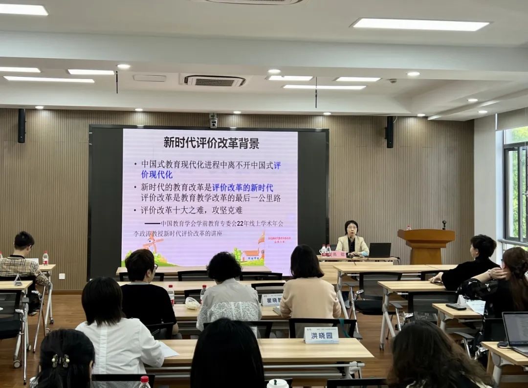 学前教育学院高敬教授作了题为《幼儿观察评估的知与行》的专题讲座,从新时代评价改革背景、观察评估的含义、价值取向和实践操作四个维度,结合评估的实例以及《幼儿园保教质量评估指南》各板块要点,深入分析解读了幼儿观察分析和发展评价的概念及其内容、途径等。