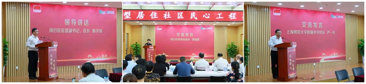 闵行区区长陈宇剑在讲话中对浦江镇大教育工作提三点希望:一要从战略高度积极推动教育事业发展。坚定“办好人民满意的教育”的坚强决心,筑牢教育优先发展地位,持续加大基础设施投入。二要继续充分利用好资源促进教育公平,加快集团化建设,通过多校协同、资源整合共享、骨干教师柔性流动,全面提升区域教学水平。三要注重培养人才建设高素质人才队伍。要进一步强化教师队伍人才支撑,营造良好引人用人留人环境。并指出 附属中学闵行实验学校的建立是闵行区加快人才培养实现教育公平的一项惠民举措,为打造浦江特色文化品牌奠定了优质的教育基础。