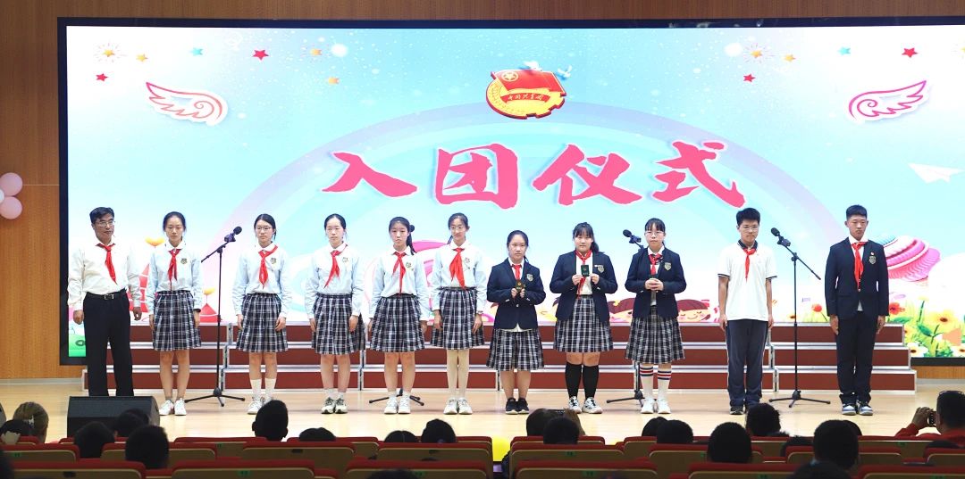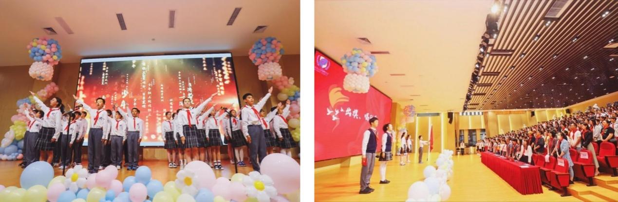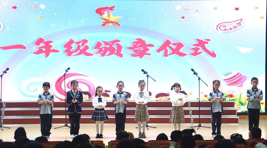 531上午, 附属宝山实验学校举行了主题为“童声飞扬庆六一 童心闪亮向未来”六一汇演暨二年级入队仪式,活动在欢快热烈的音乐中拉开序幕。首先,举行二年级入队、一年级颁章以及新团员入团仪式。随后,进行六一汇演,各年级师生带来的歌舞精彩纷呈,赢得了现场阵阵热烈的掌声。