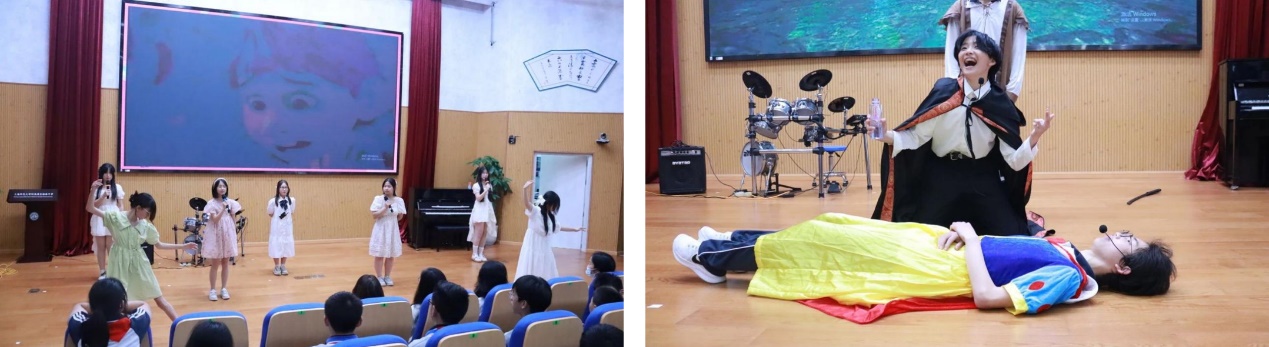 “童心萌动,乐享六一”,531日,附属第五实验学校开展庆“六一”主题活动暨校园艺术节开幕式。尚伍厅内,各年级同学们用创意的方式重新演绎校歌,获得了大家的阵阵掌声。课程展示环节,同学们化身课程推广大使,戏剧、数学情景剧、合唱、琵琶合奏、古诗新唱,一个个课程精彩纷呈,妙趣横生。咏竹幼儿园的超级宝贝们也来到了活动现场,为舞台带来了非凡的体验。