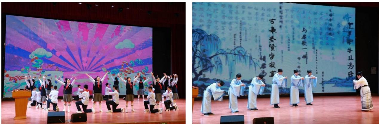 在中队活动中,孩子们不仅有丰富多彩的表演,还有创意十足的趣味游戏,收获了满满的快乐;在主题集会中,孩子们准备了丰富多彩的节目,合唱、朗诵、手势舞……以饱满的热情、激昂的嗓音和动人的表现,共同演绎出一曲曲精彩的乐章;在篮球赛中,孩子们在参与中提升了自信心、锻炼了自己的能力、培养了团队合作的精神。
