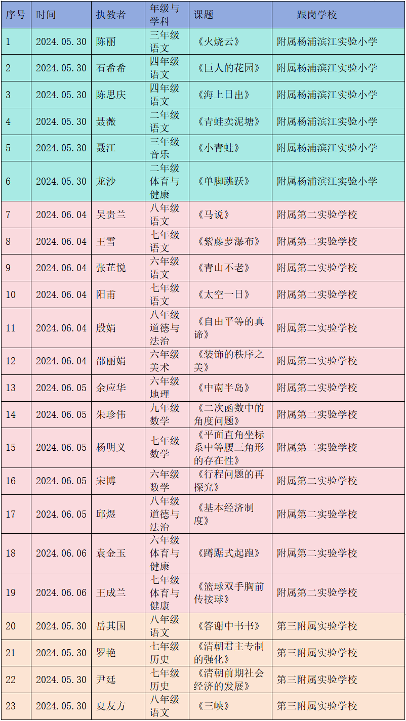 2024年5月, 附属七星关区实验学校选派了1名筹备组成员及24名骨干教师到我校进行为期五周的跟岗学习。筹备组成员在附属杨浦滨江实验小学潜心研修,骨干教师分别在附属第二实验学校、第三附属实验学校和附属杨浦滨江实验小学跟岗学习。在学习过程中,跟岗学校领导与学科导师团队辛勤付出、精心指导,筹备组成员和跟岗老师们积极参与跟岗学校的管理、教学、教研活动,多角度观摩学习学校课程建设、教学管理、班团队建设、学生能力发展以及教师专业成长路径,并且及时交流学习心得。