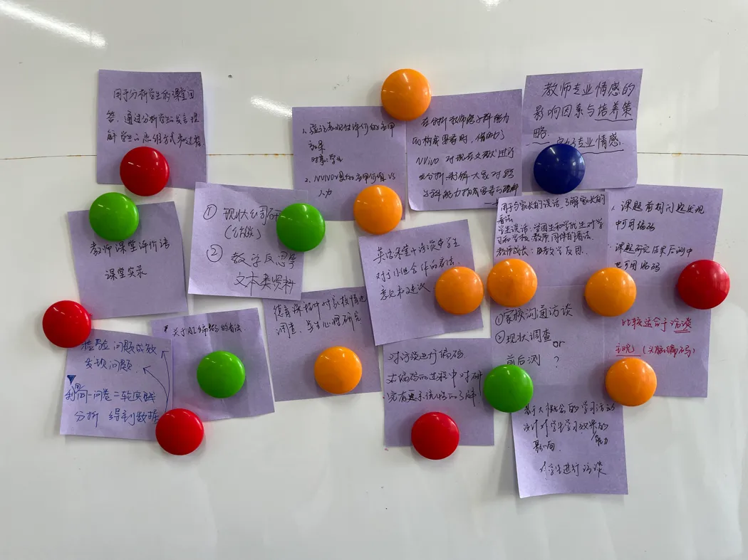 讲座最后,各位学员还通过便利签的形式记录了各自在过往或未来科研工作中使用质性研究编码分析的具体情形。