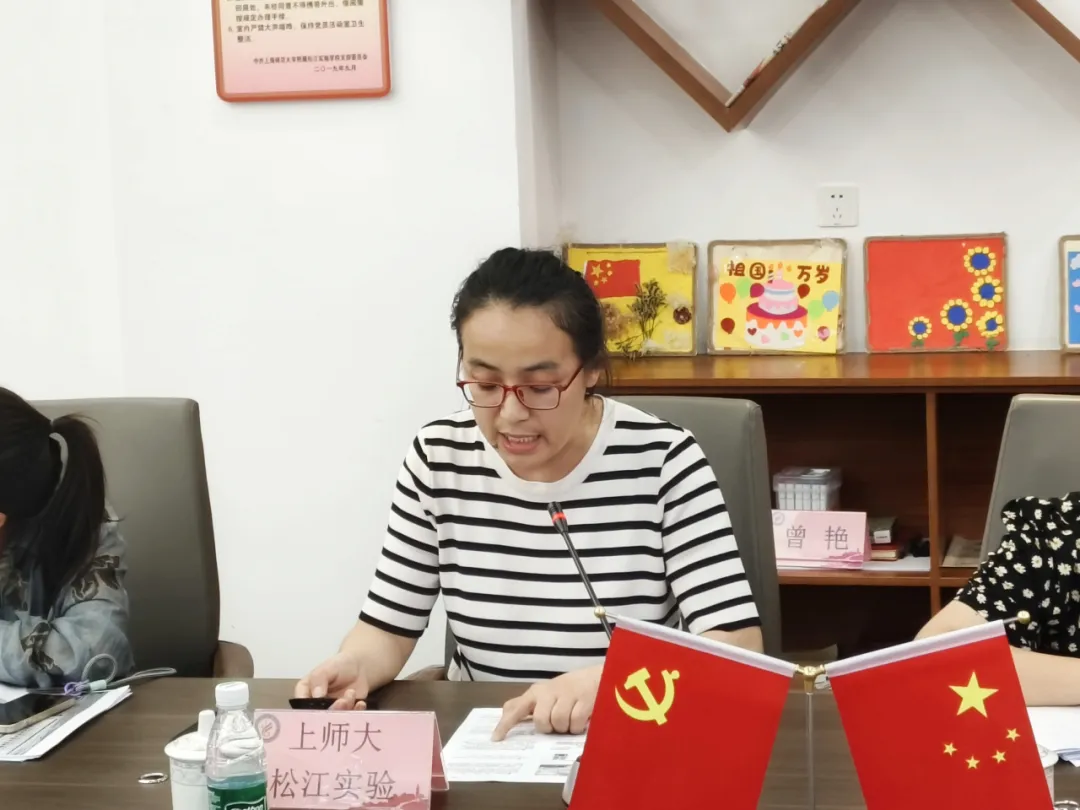 泗泾实验学校沈莉莉老师围绕学校师资建设这一阶段性工作内容,介绍了见习教师、校本研修活动的制度保障以及师徒互听和专家座谈等培训形式。